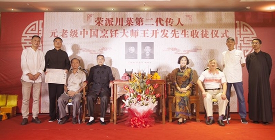 月末,王开发大师在成都举行隆重的收徒典礼——以传统礼法,由“引见师”“保证师”尊奉王开发老先生为师,徒弟李作民把“荣派”川菜发扬光大作为毕生已任。