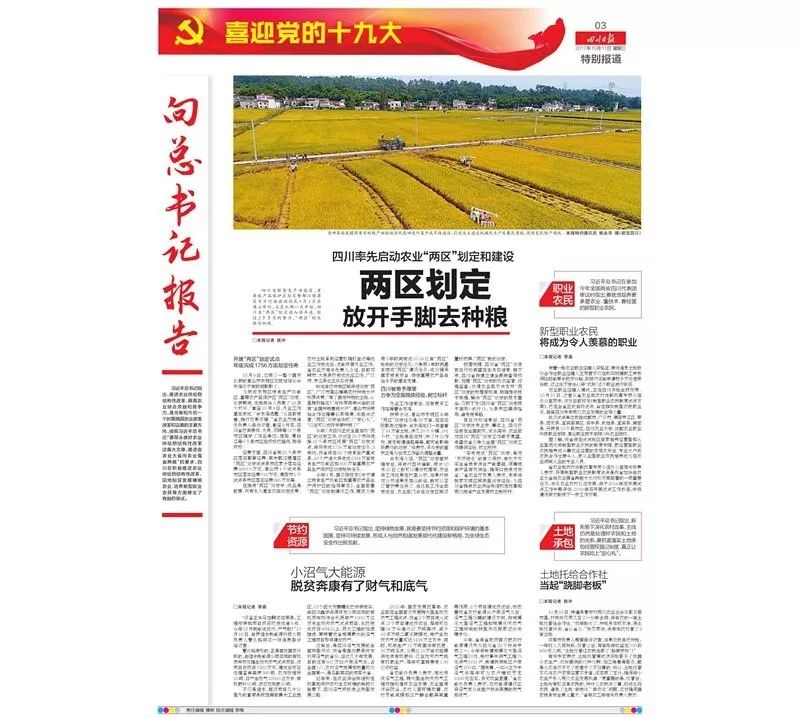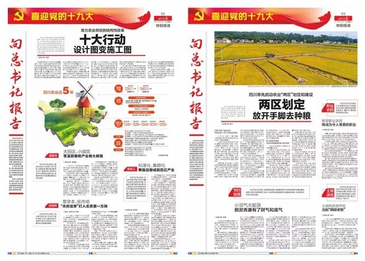 今天的四川日报,在第二、三版全景呈现了四川农业供给侧结构性改革的方方面面,题目聚焦于《十大行动》《两区划定》。