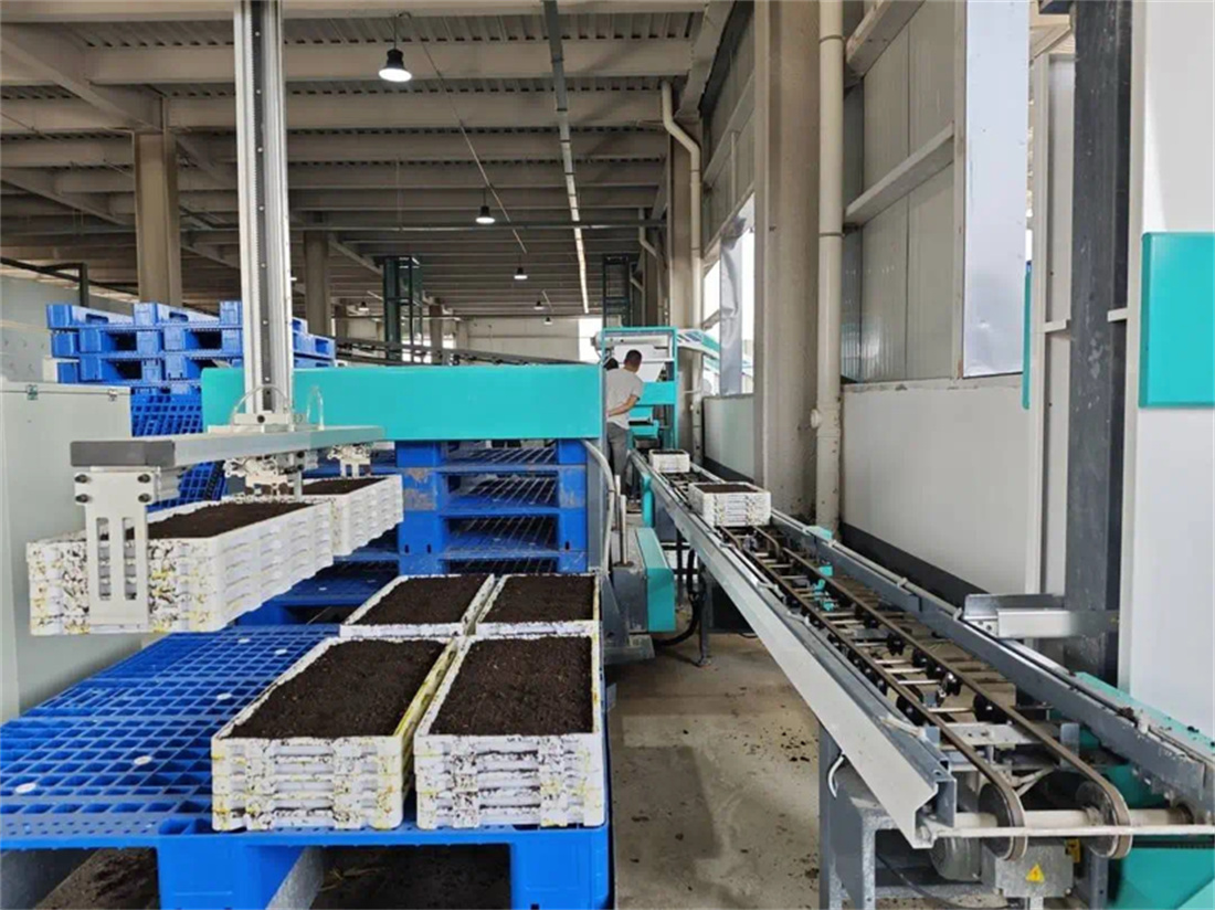 自动化高速育秧流水线正在制作秧盘