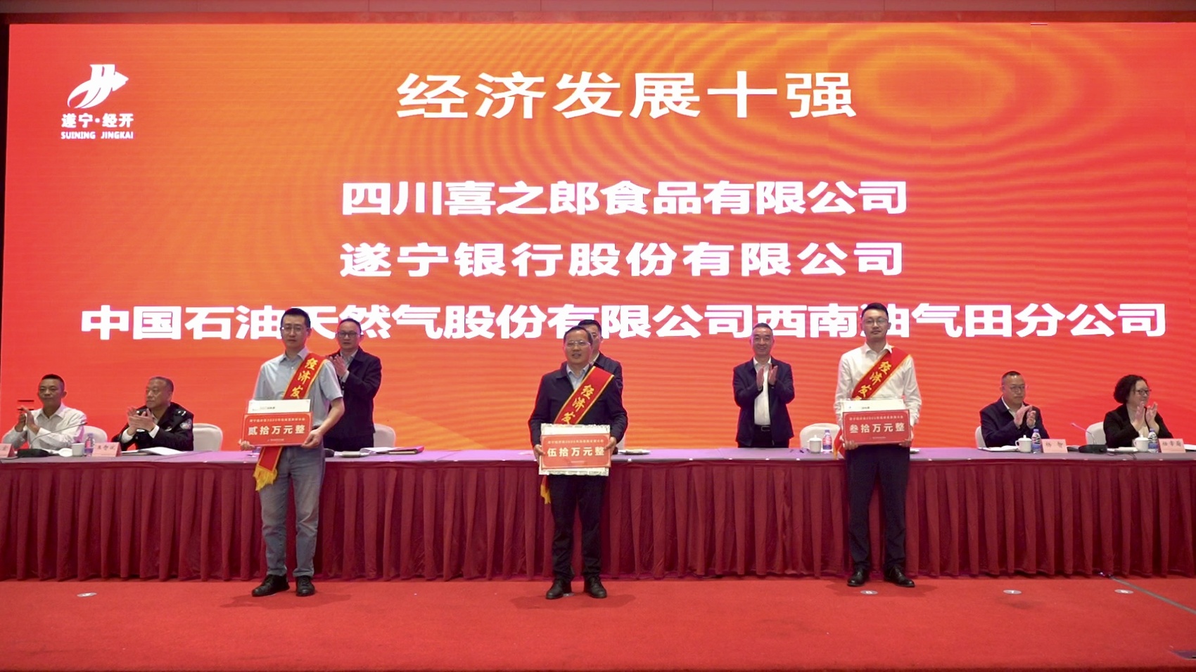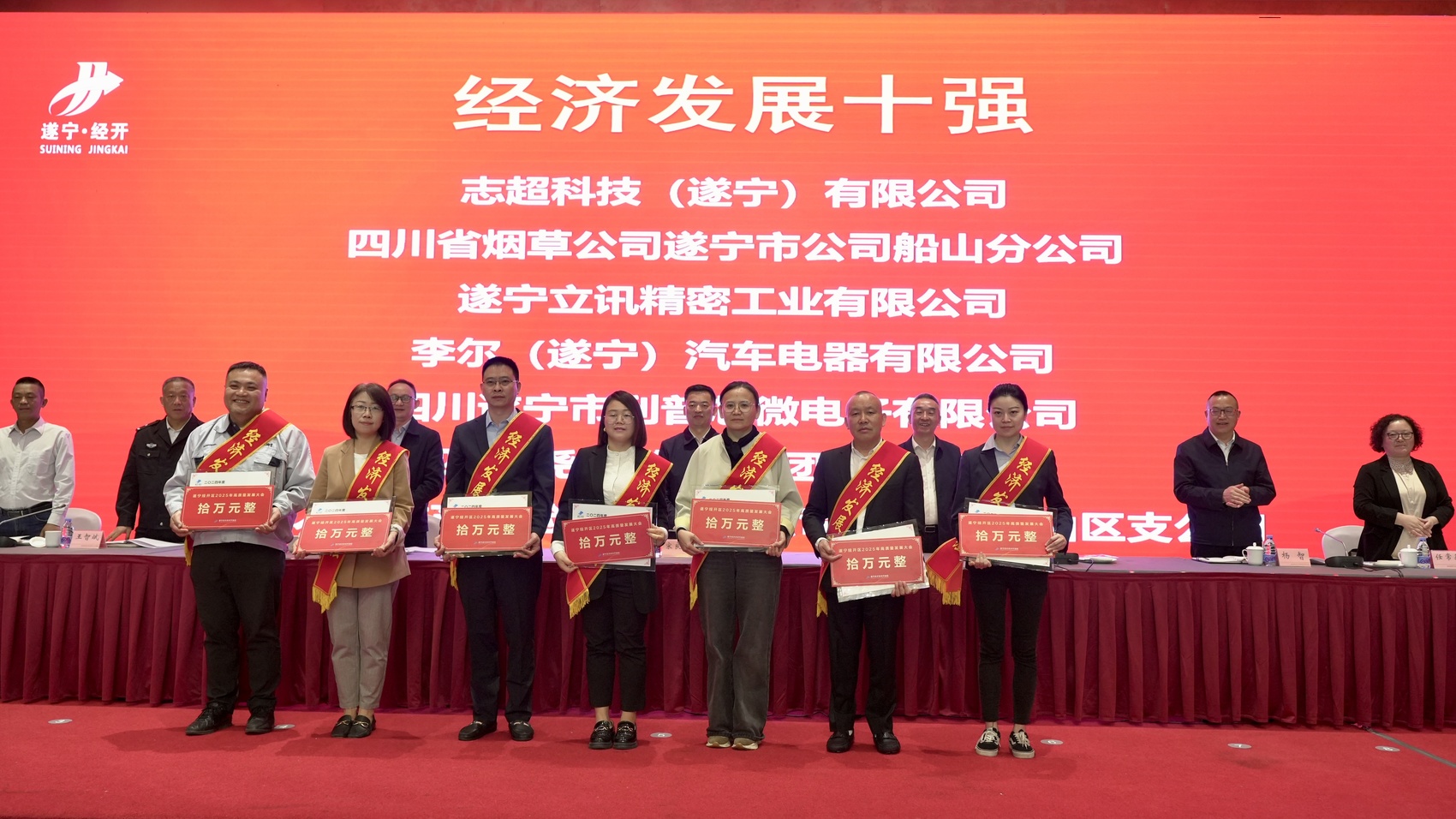 4月10日,遂宁经开区2025年高质量发展大会举行,会上对40家2024年经济发展贡献突出的企业以及3名个人进行表扬奖励,共颁发奖金435万元,单笔奖金最高50万元。