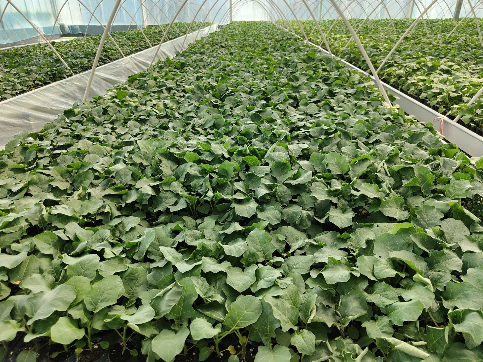 育苗场内,用于嫁接茄子苗的托鲁巴姆砧木苗长势良好。