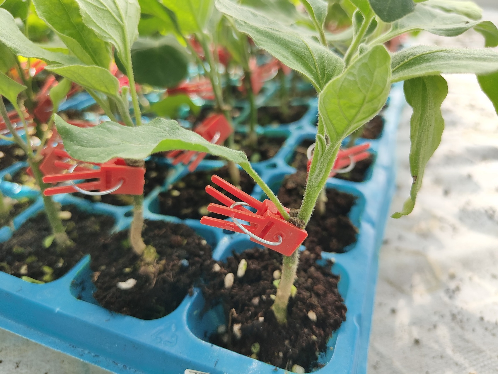 刚进行嫁接的茄子苗。