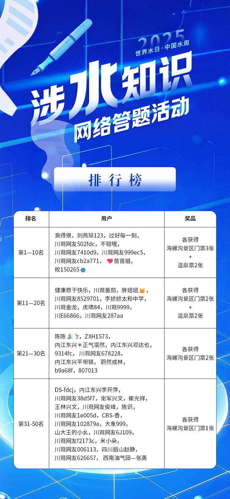 “世界水日”网络答题圆满收官,祝贺获奖者。