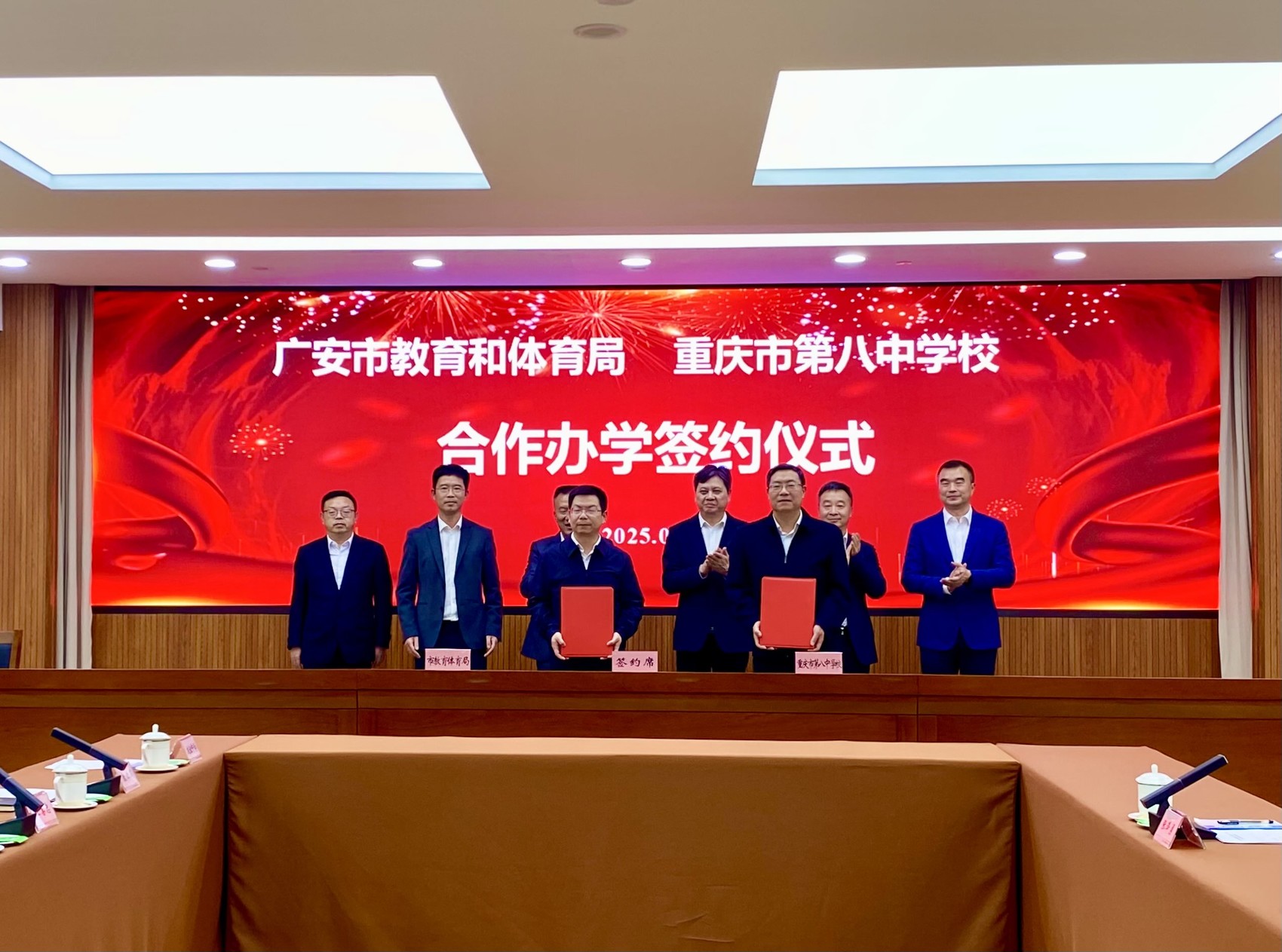4月11日下午,广安市教育和体育局与重庆市第八中学校(下称“重庆八中”)举行合作办学签约仪式,双方以广安友谊中学官盛校区为合作办学主体,命名为“重庆八中广安友谊学校”(下称“八中友谊学校”),办学规模约2000人。