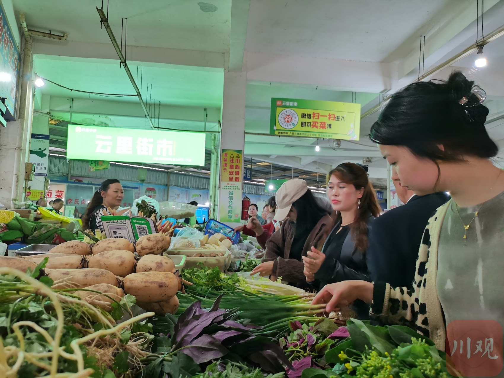 位于资阳高新区的鸿福农贸市场内的智能云秤引起了市民的关注。不仅能通过摄像头快速识别选购的蔬菜品类,还能直观看到每类蔬菜对应的价格。