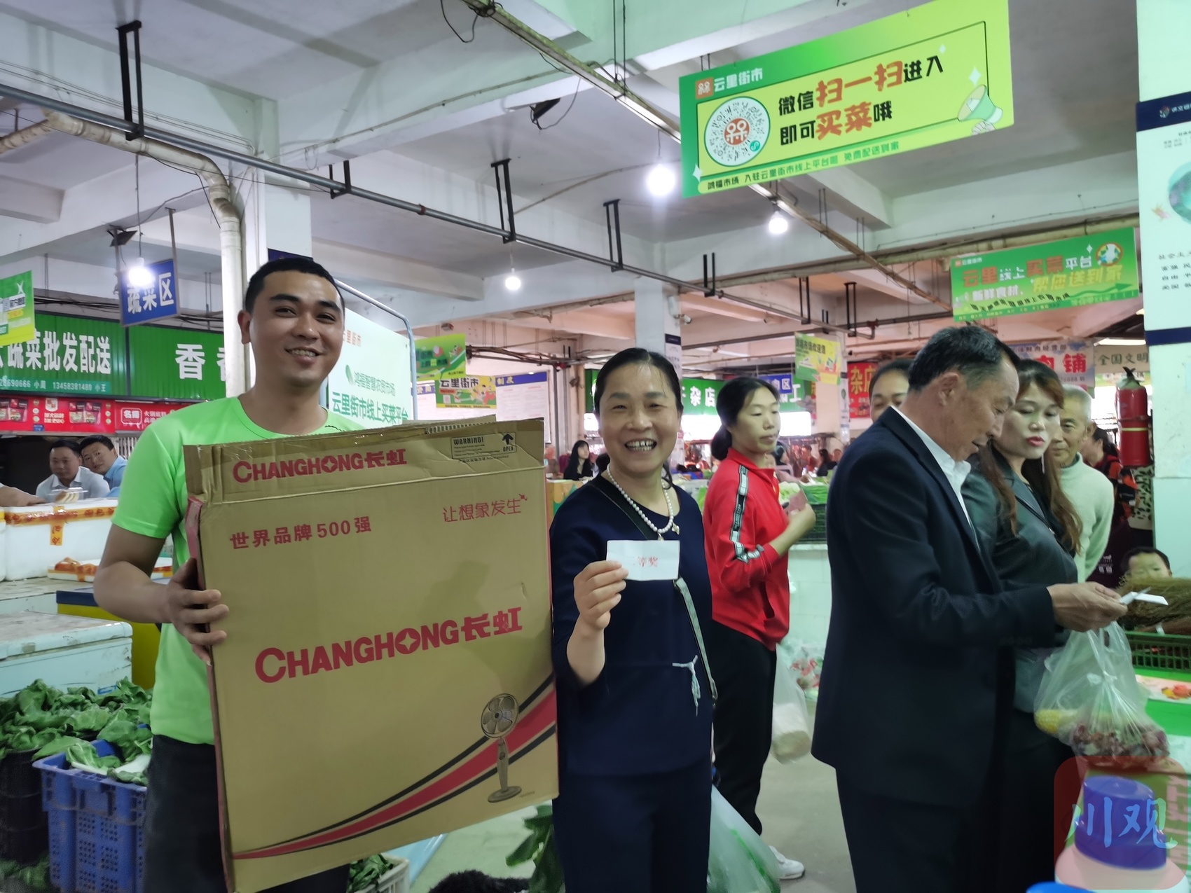 4月11日当天,鸿福智慧农贸市场正式投用,14个摊位通过智能云秤接入云里街市平台。对市民来说,价格透明、商品溯源让“菜篮子”拎得更轻松、更安心;对摊主来说,依托平台开发的线上买菜功能,打通了网上销售渠道,以同样的价格,同时拥有线上线下两个“摊位”,进一步提升了销量。