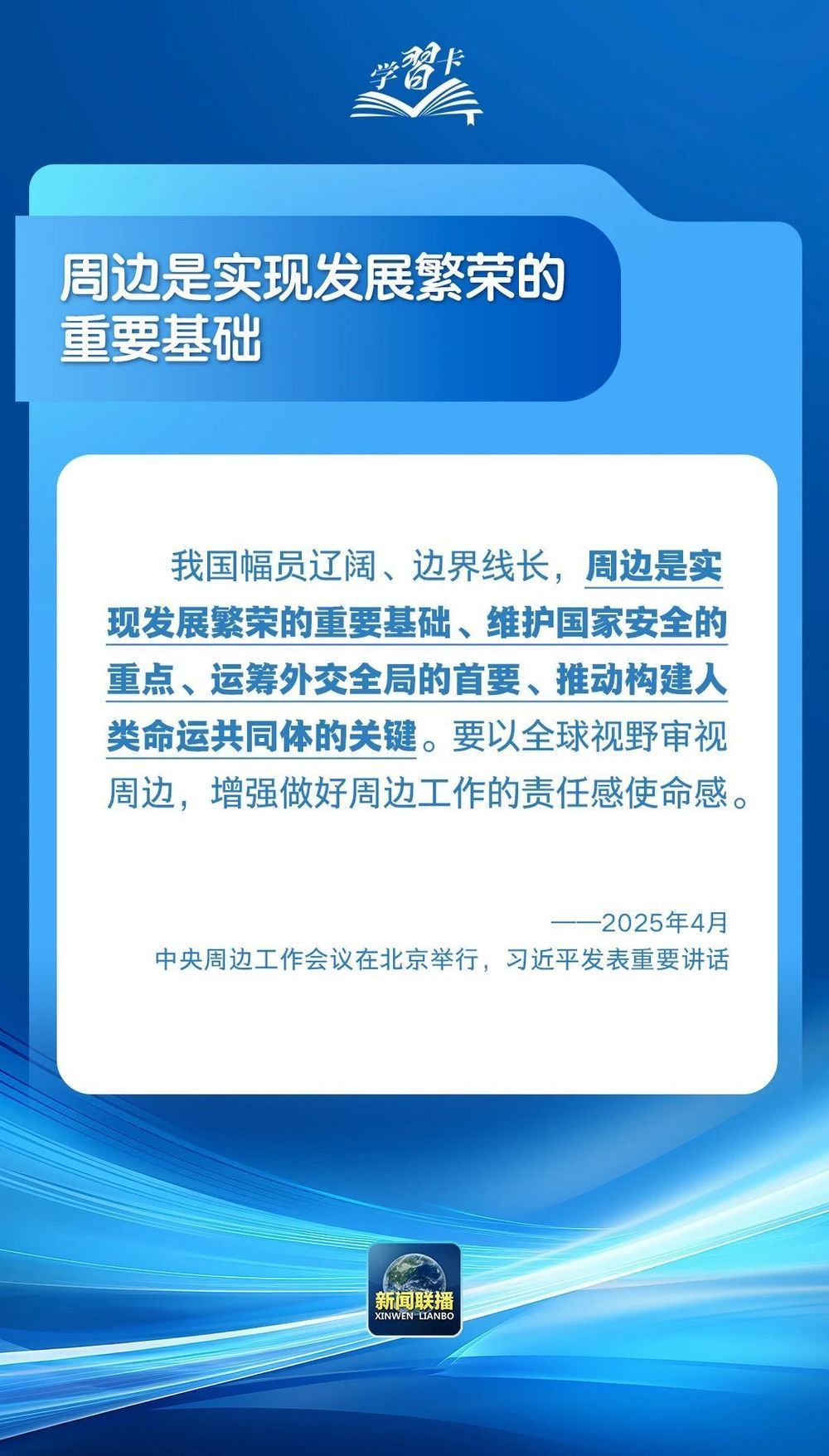 周边是我国安身立命之所,发展繁荣之基,对我国具有极为重要的战略意义。
