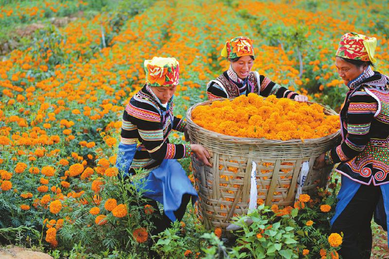 德昌县彝族群众收摘万寿菊。川报观察记者 王云 摄