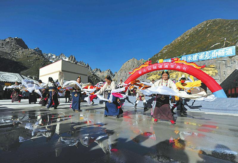 藏族群众载歌载舞庆祝雀儿山隧道通车。川报观察记者 何海洋 摄