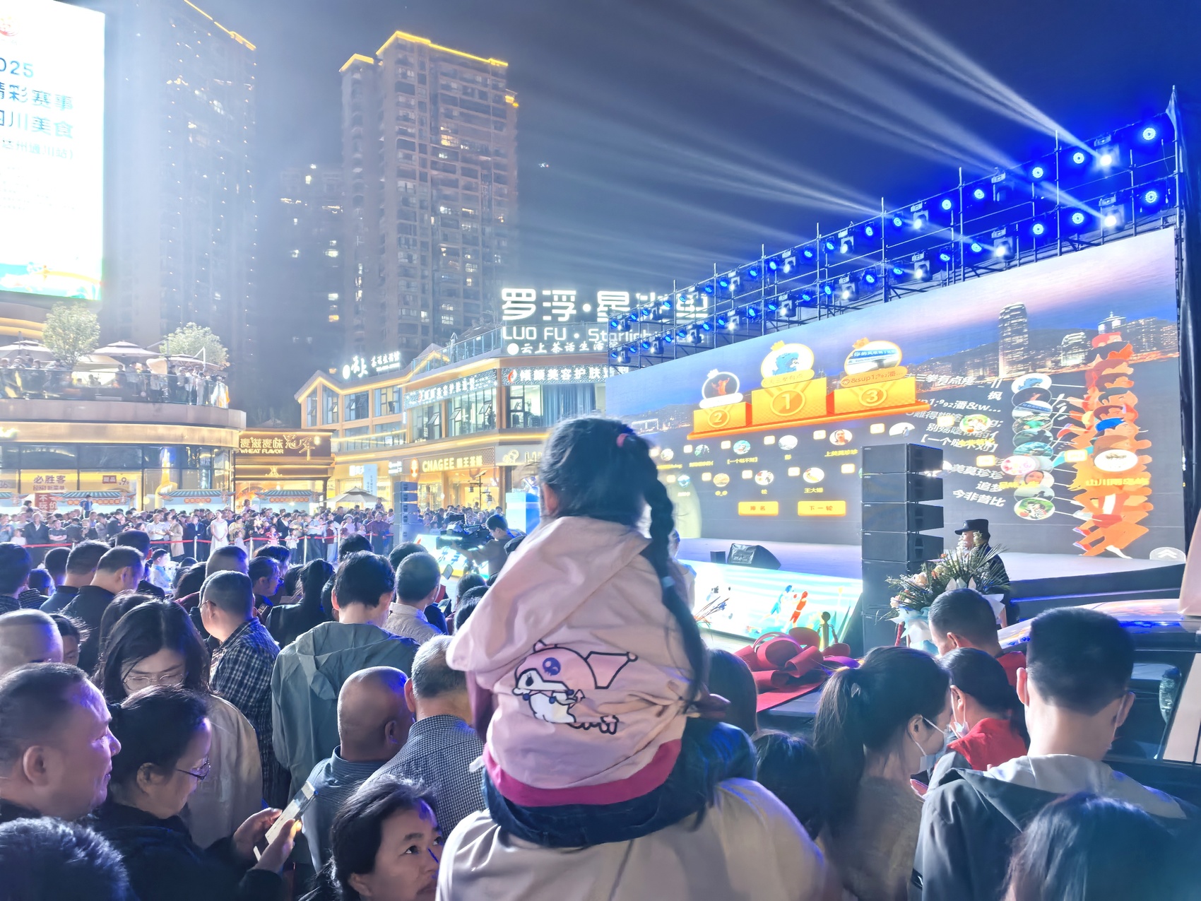 4月12日晚,达州罗浮广场灯光璀璨、人声鼎沸,伴随开场舞“通九州·纳百川歌舞表演”和体育武术表演,“乐享精彩赛事・寻味四川美食”系列活动在这里举行达州通川站的启动仪式。