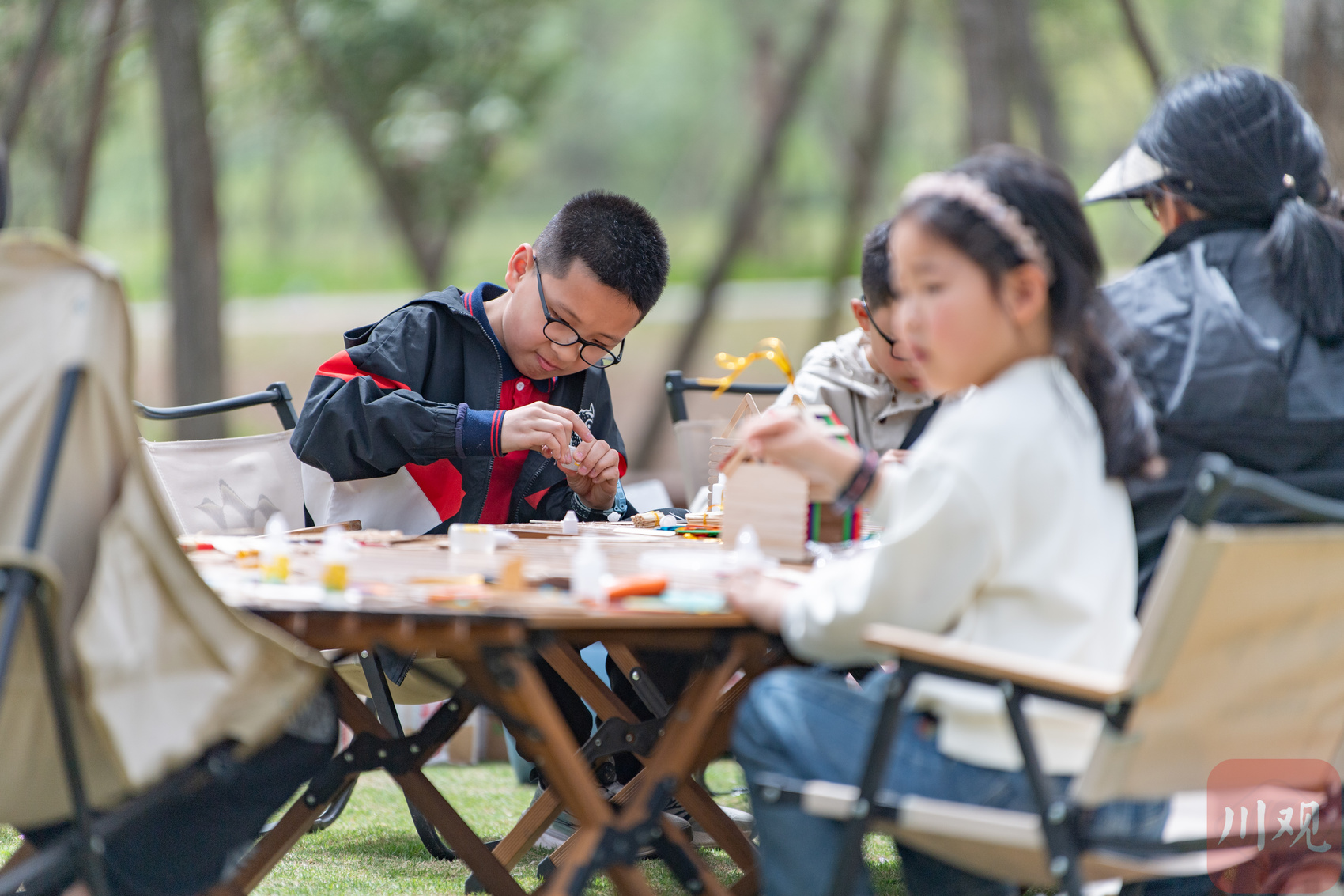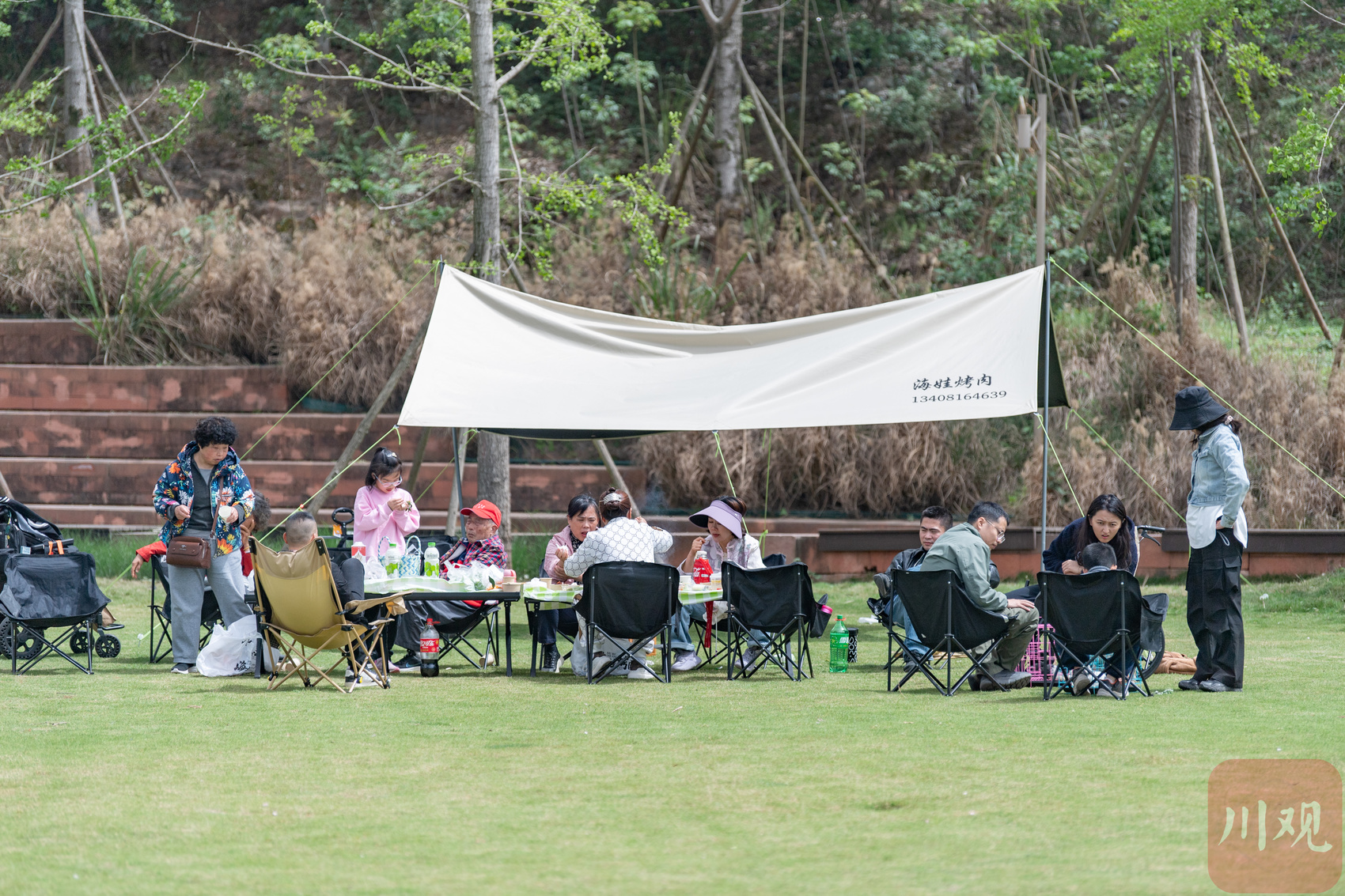 4月12日,市民在德阳市中江县凯州新城中央音乐山谷露营
