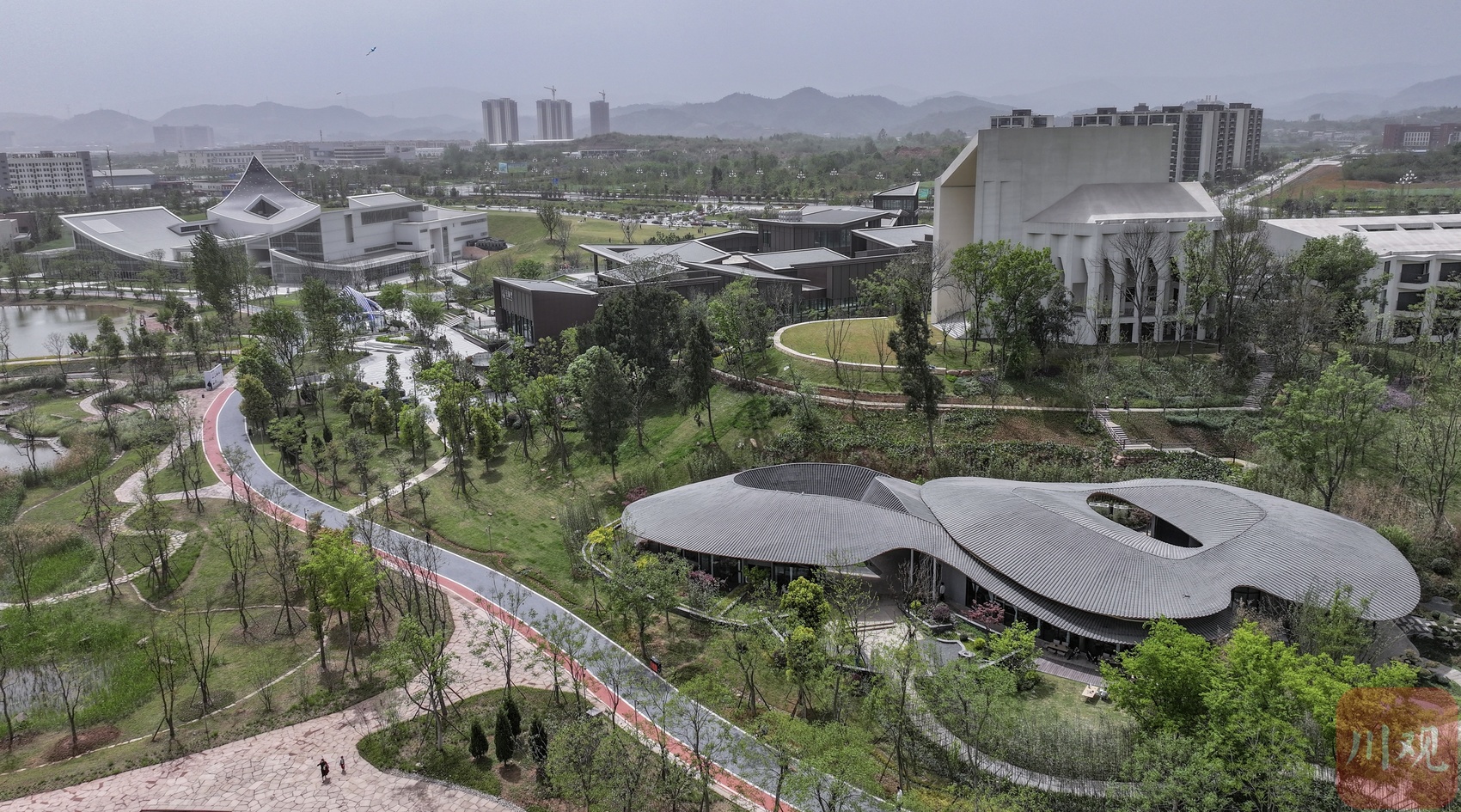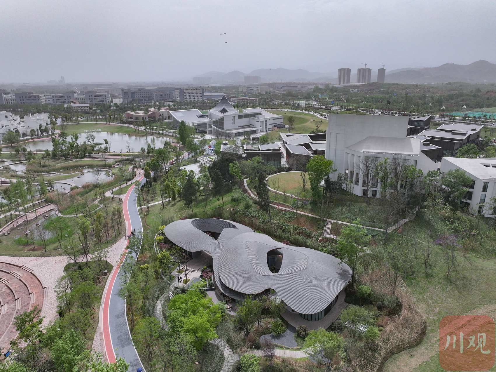 4月12日,短暂降雨后,德阳中江县天气放晴。当地民居聚集在凯州新城中央音乐山谷,畅享音乐与自然融合时光。