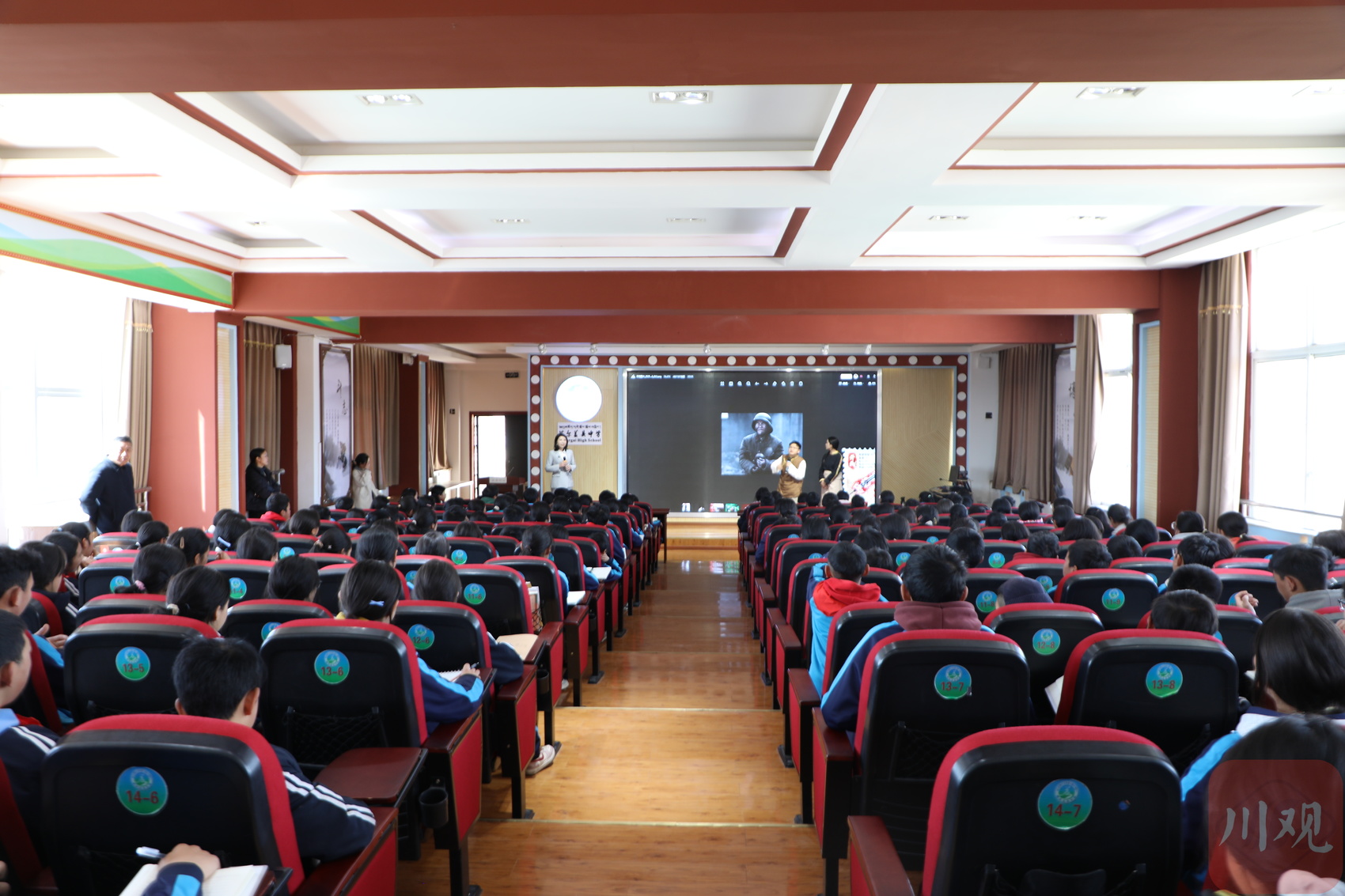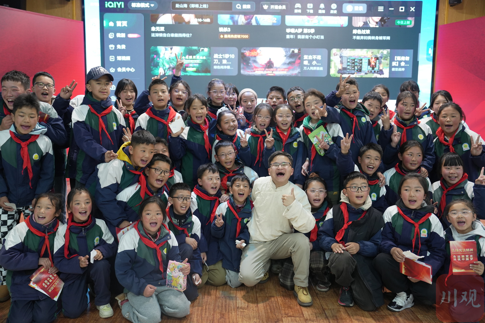 在阿坝县城关第一寄宿制小学,孩子们争相分享自己的理想。当林浩展示其在《我的特一营》中饰演的“小四川”剧照时,现场响起热烈掌声。