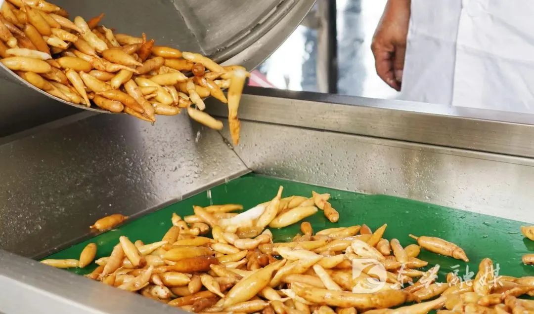 在郭北镇青台村共享加工厂里,天冬产品生产线正将天冬原料转化为高附加值产品。清洗去皮后的鲜天冬经低温烘制、古法蜜渍等十几道工序,最终成为晶莹剔透的天冬蜜饯。