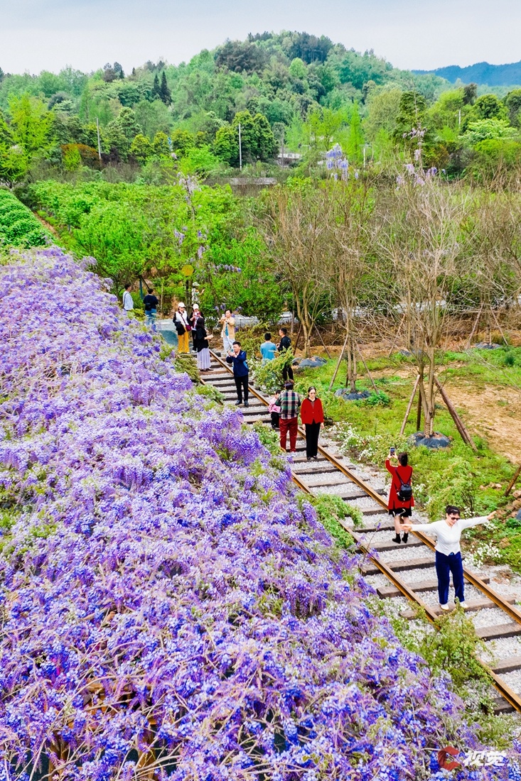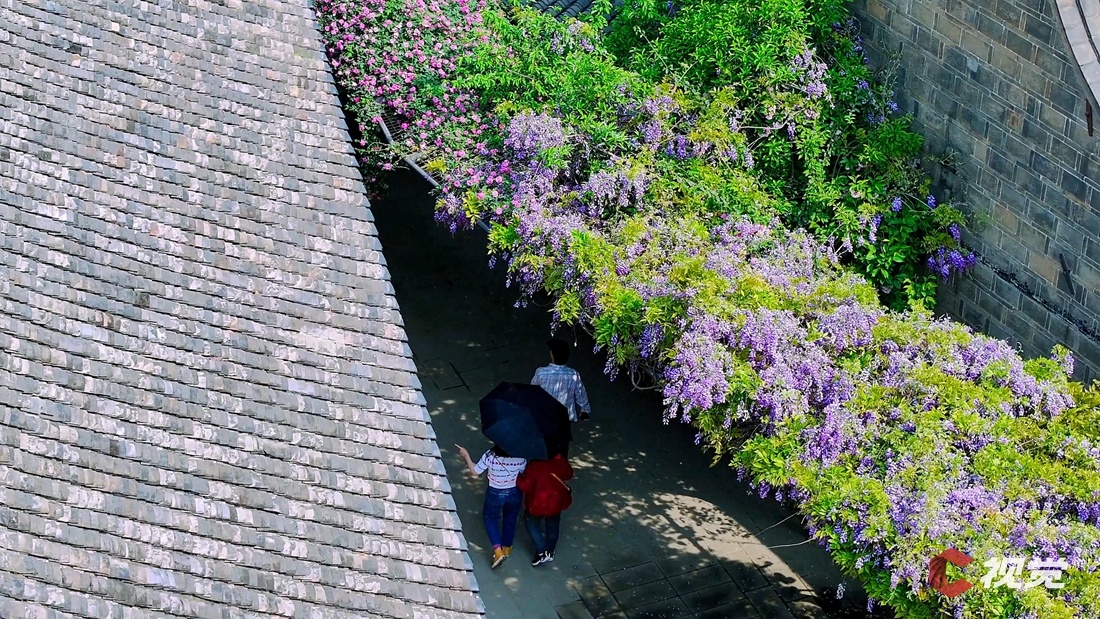 春有约,花不误,紫藤花开香如故;风铃响,花瓣飞,花枝摇曳待人归。一串串风铃,悬挂于绿叶藤蔓之间,紫中带蓝,灿若云霞,飘逸悠然,亦梦亦幻。步入紫藤长廊,看花影婆娑,听风铃细语,让一抹紫色治愈身心,在花香中重拾生活的诗意,简直“绝绝紫”!