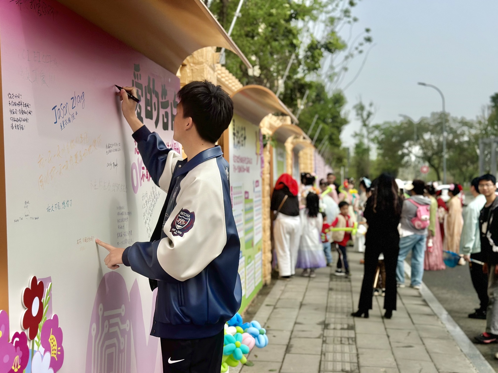 活动现场,青年共创文化墙首次迎来数百位青年的参观打卡,“青年能量诗篇”“匿名情书告白墙”“搭子速配计划”“诗歌涂鸦墙”等互动板块,成为年轻人争相参与的新晋打卡点,不仅满足了青年的社交需求,也成为青年表达自我、融入社区的重要渠道。此外,在文化节舞台上,青年乐队在舞台上放声闪耀,来自电子科技大学清水校区的汉服社团化身“文化导游”带领观众打卡,“汉服快闪打卡”“国风手作工匠”等丰富的活动,营造出沉浸式青年文化体验,让青年与社区的深度互动。