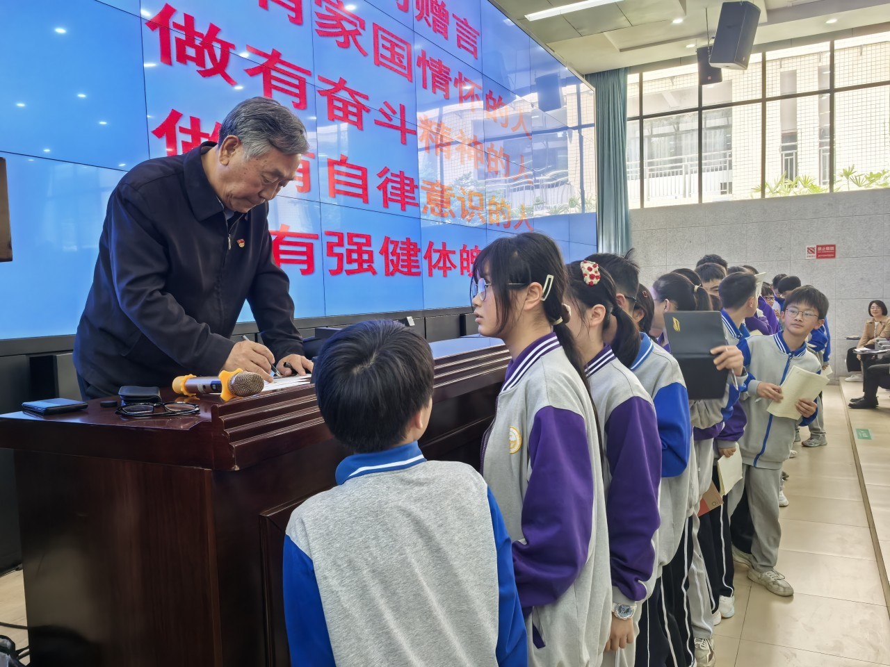 讲座结束后,同学们不愿赶去食堂吃饭,而是将孙保卫团团围住索要签名,一场新时代的“追星”热潮在此刻涌动。