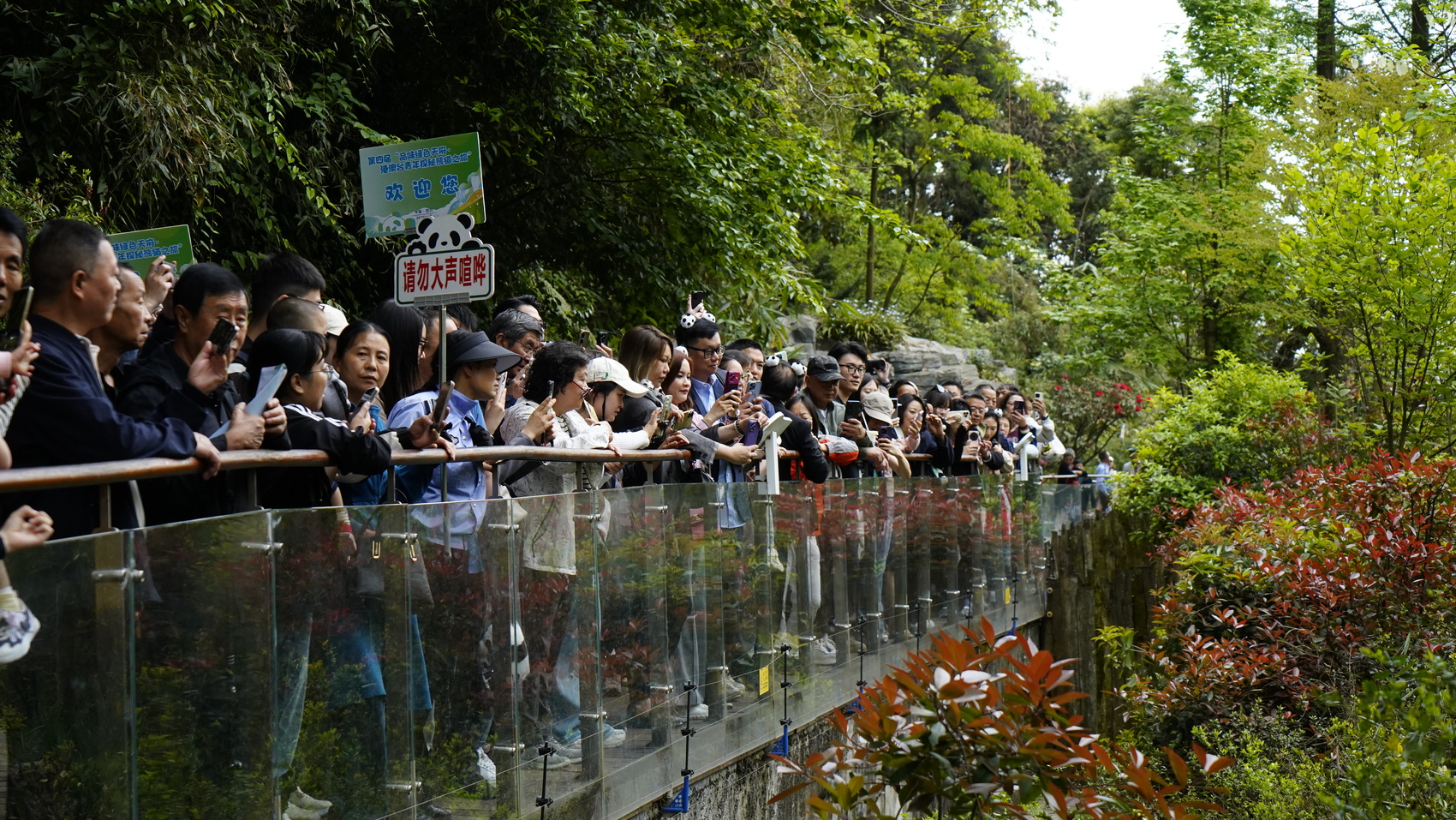 4月15日,50余名港澳台青年头戴熊猫发箍,走进都江堰熊猫谷,开启为期一周的“品味绿色天府·港澳台青年探秘熊猫之旅”。