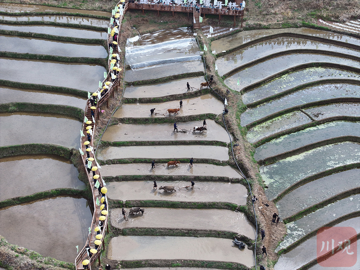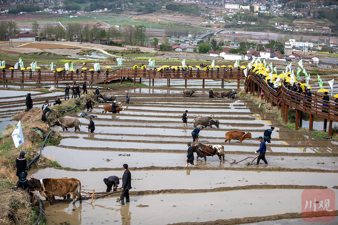 村民们赶着耕牛、扶着犁耙,正式开启春耕劳作