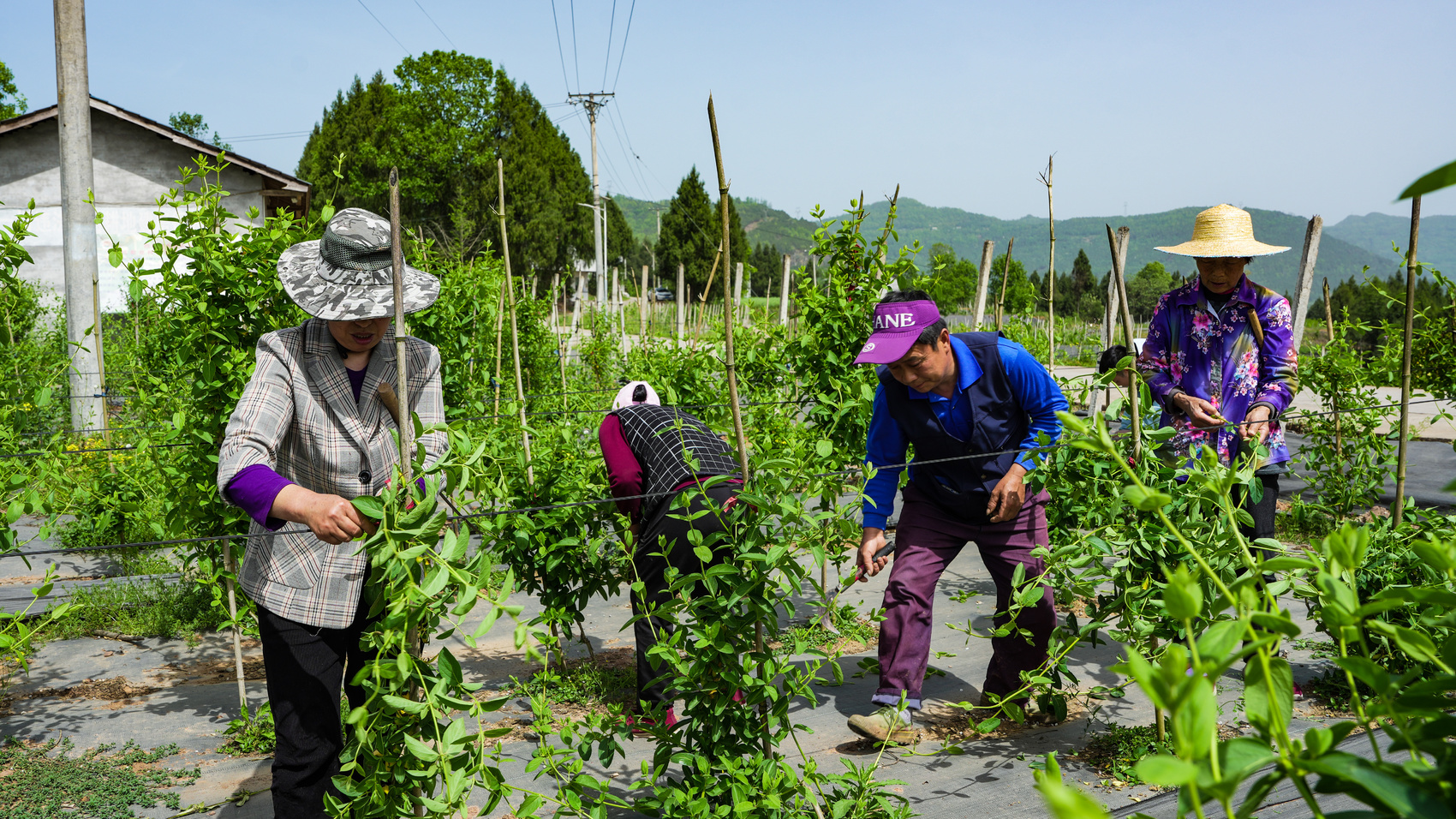 “注意把底部的嫩芽摘除,保留顶端优势枝。”4月14日,在巴中市平昌县澌岸镇先锋村的金银花种植基地里,村党支部书记李秀泉正手把手指导村民进行精细化管护。