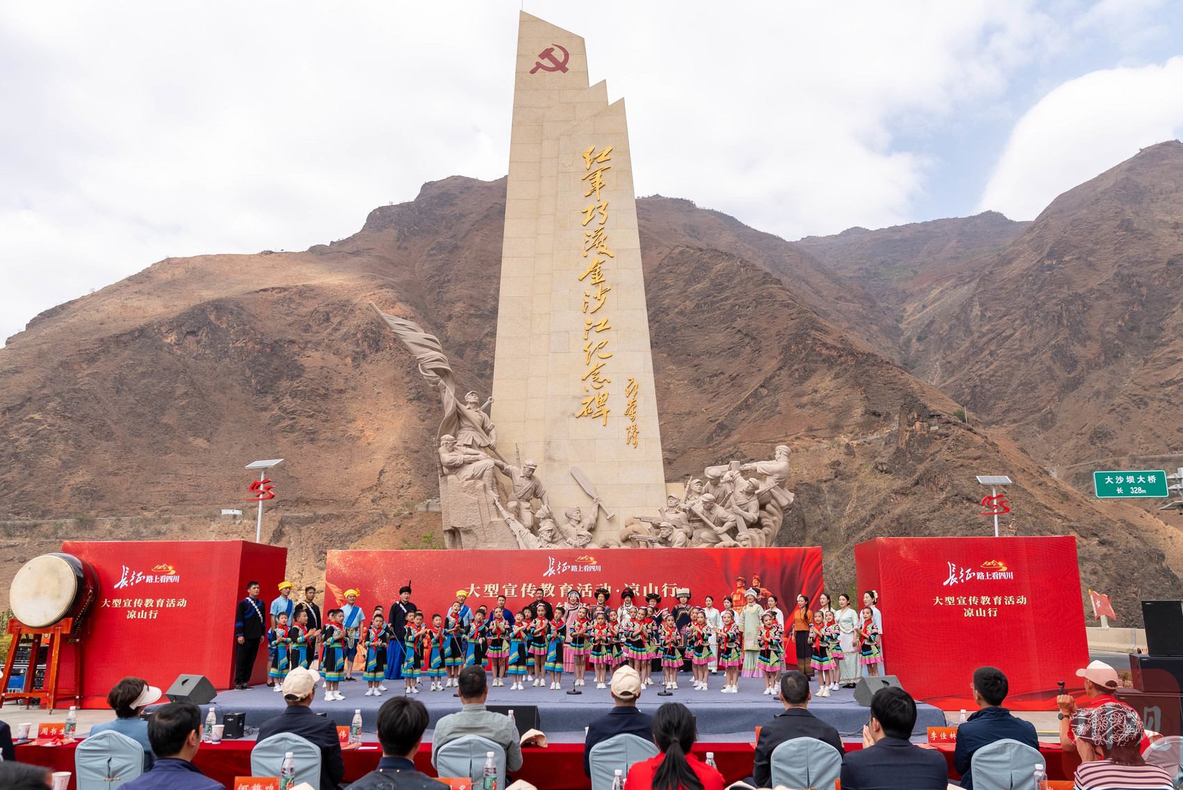 “长征路上看四川”大型宣传教育活动凉山行集结式在会理市皎平渡纪念碑广场举行。