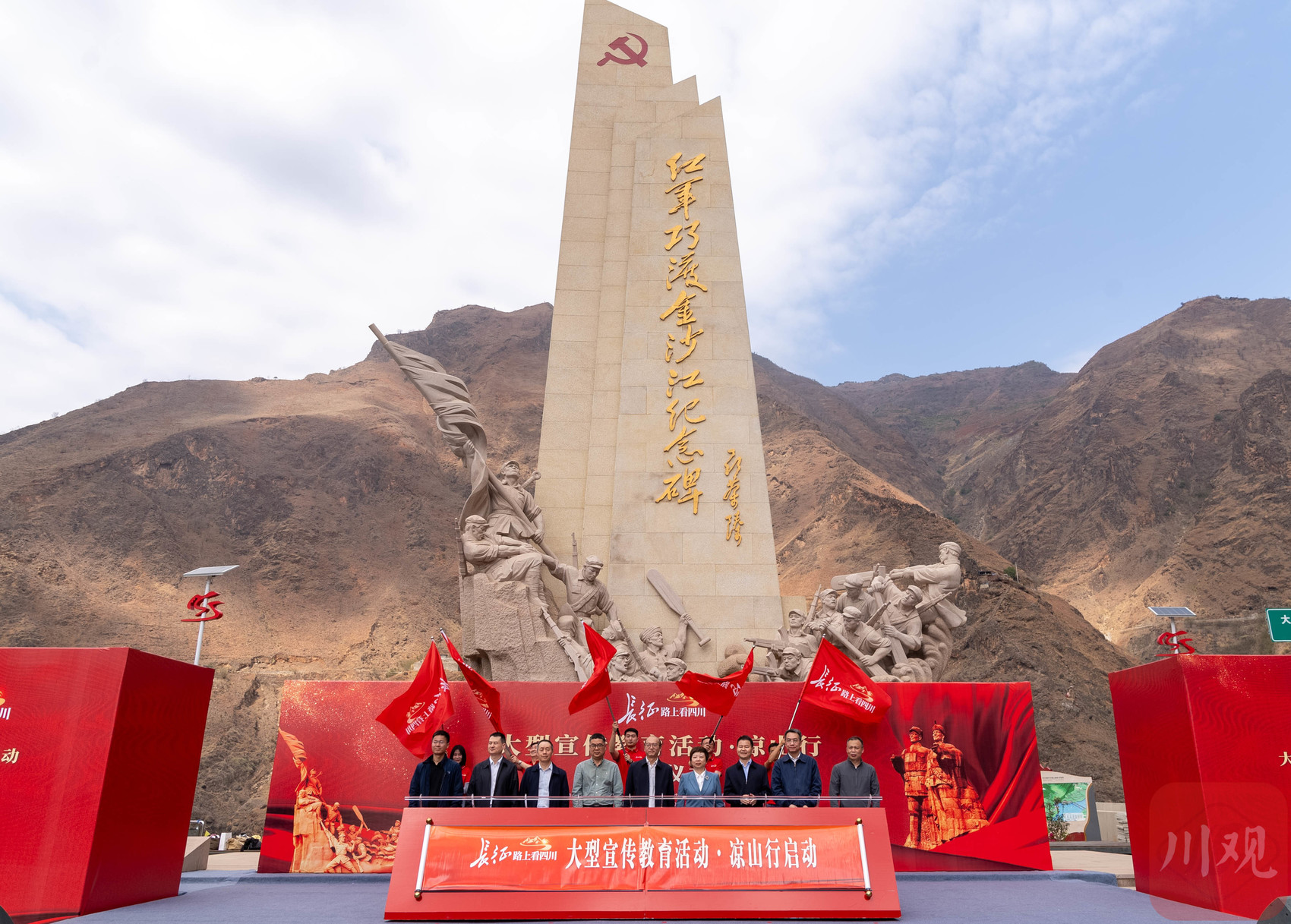 4月15日,在会理市皎平渡纪念碑广场, “长征路上看四川”大型宣传教育活动凉山行集结式在会理市皎平渡纪念碑广场举行。90 年前,中央红军在这里巧渡金沙江,书写了波澜壮阔的历史。如今,110 余名代表组成 5 支队伍,从这里踏上追寻先辈足迹的旅程。