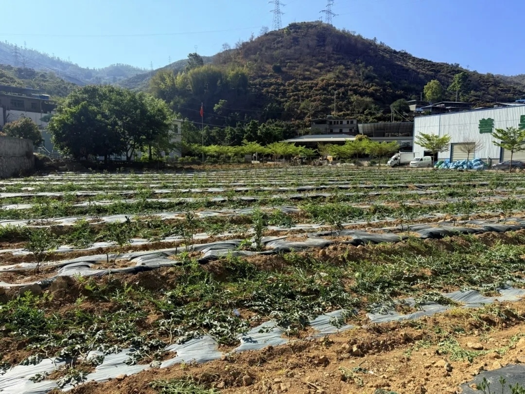 “这里曾是一片空地。”4月7日,村委会副主任张开勇带记者来到了如今种植金柑树的地块。放眼望去,树苗整齐排列,在微风中轻轻摇曳。黑色的地膜覆盖在土地上,白色滴灌管道分布其间,处处焕发着勃勃生机。