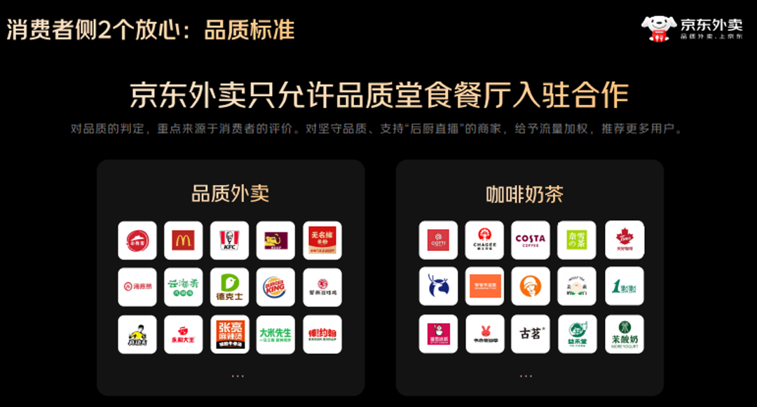 此外,京东外卖严控入驻门槛,即入驻商家必须是有线下客流的餐饮店铺,而非纯外卖店。同时还制定严格的商家入驻审核标准与管理制度。