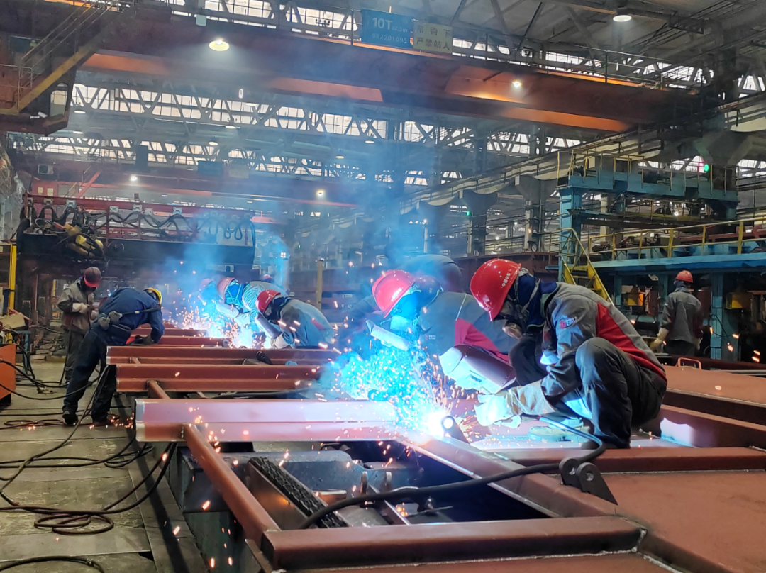 △中车眉山车辆有限公司生产车间内焊花飞溅。图源廖奎