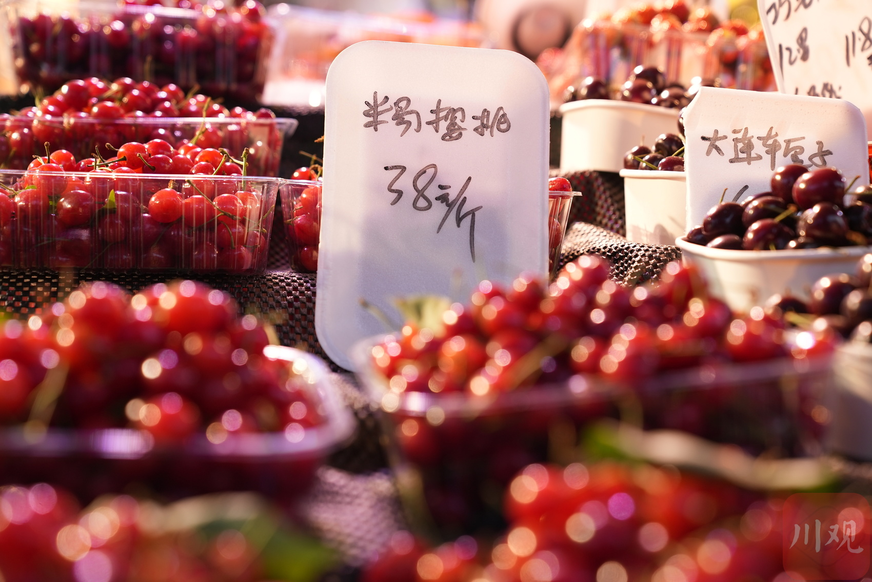其实横向对比,今年的樱桃价格和去年同期是基本持平的,四川樱桃好吃不欺人,我们是有好看又可口。