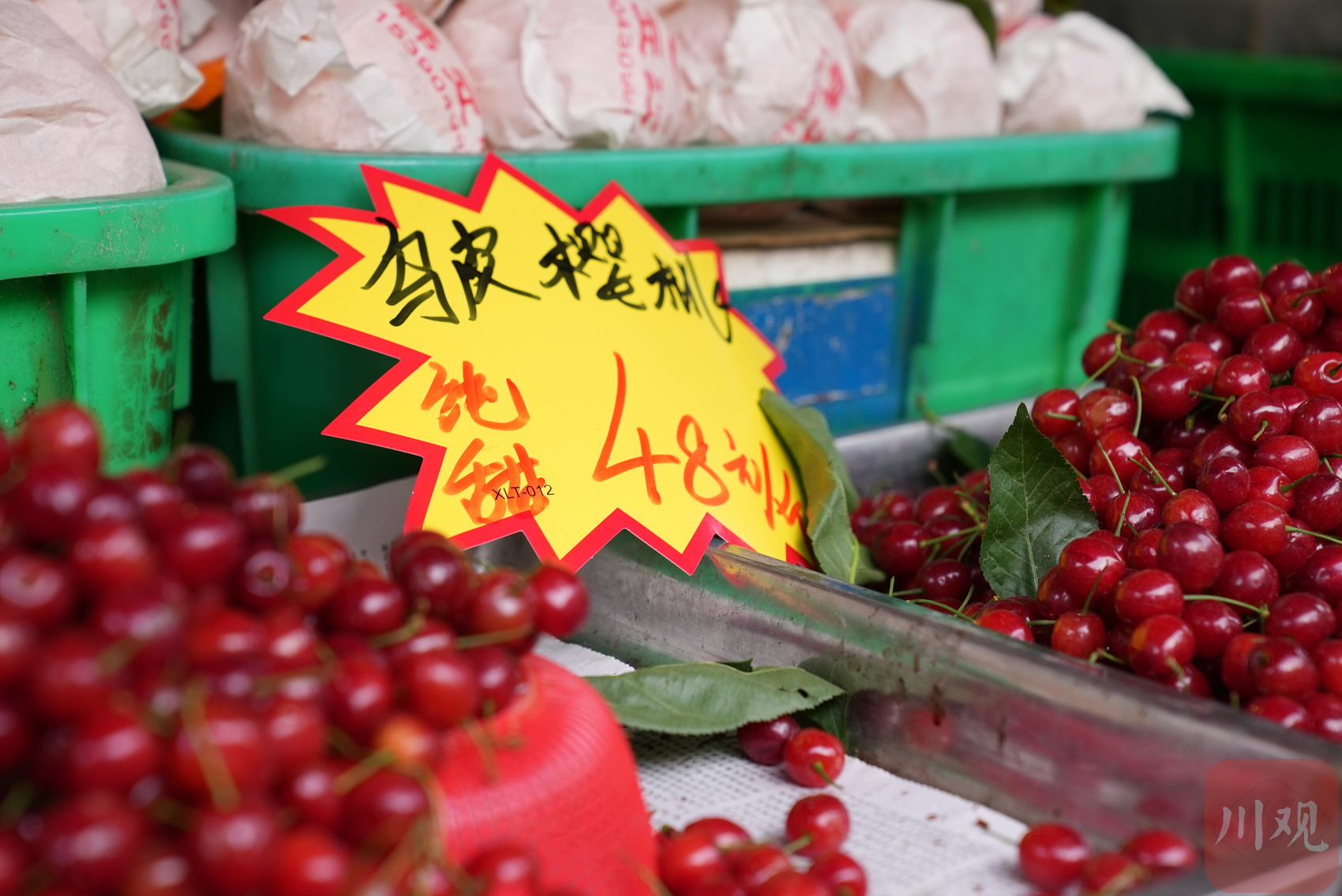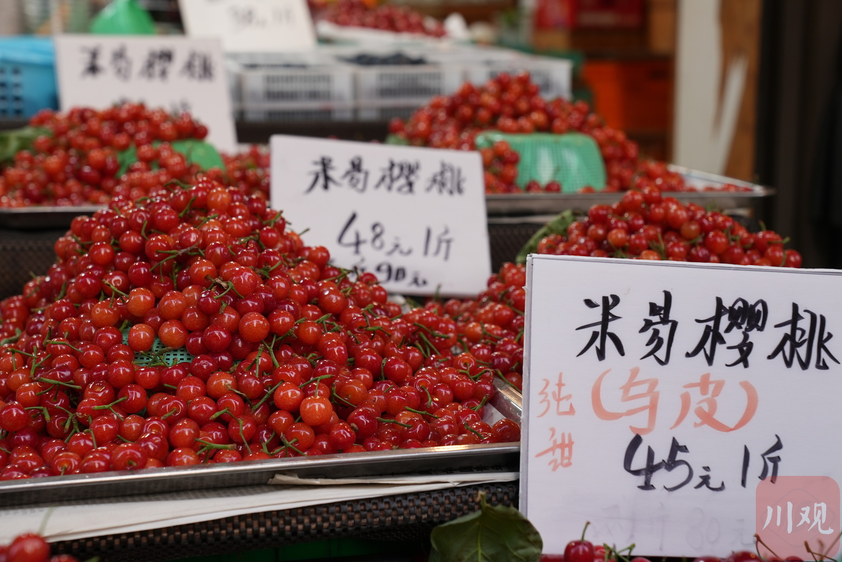 青羊区蔡桥附近一家水果店,所售的乌皮樱桃标价每斤48元