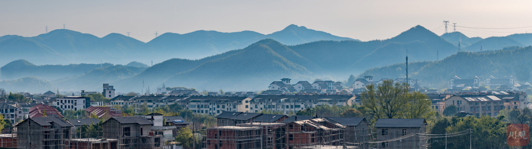 这是4月1日在浙江省安吉县余村拍摄的乡村民居,覆盖竹林的远山与风格一致的建筑相得益彰。(拼接图片)