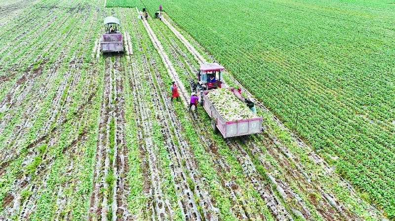 在蓬安县锦屏镇中坝社区蔬菜种植基地,菜农正在采收萝卜。