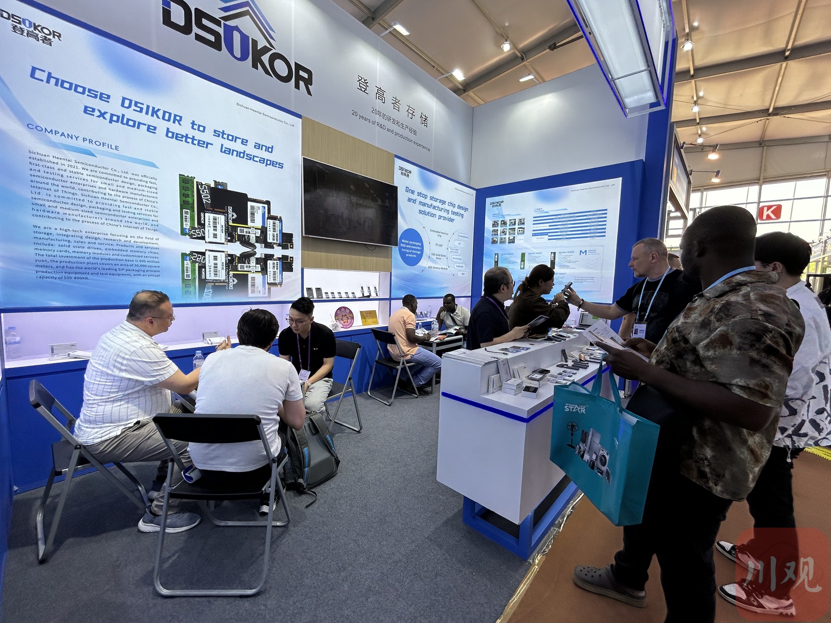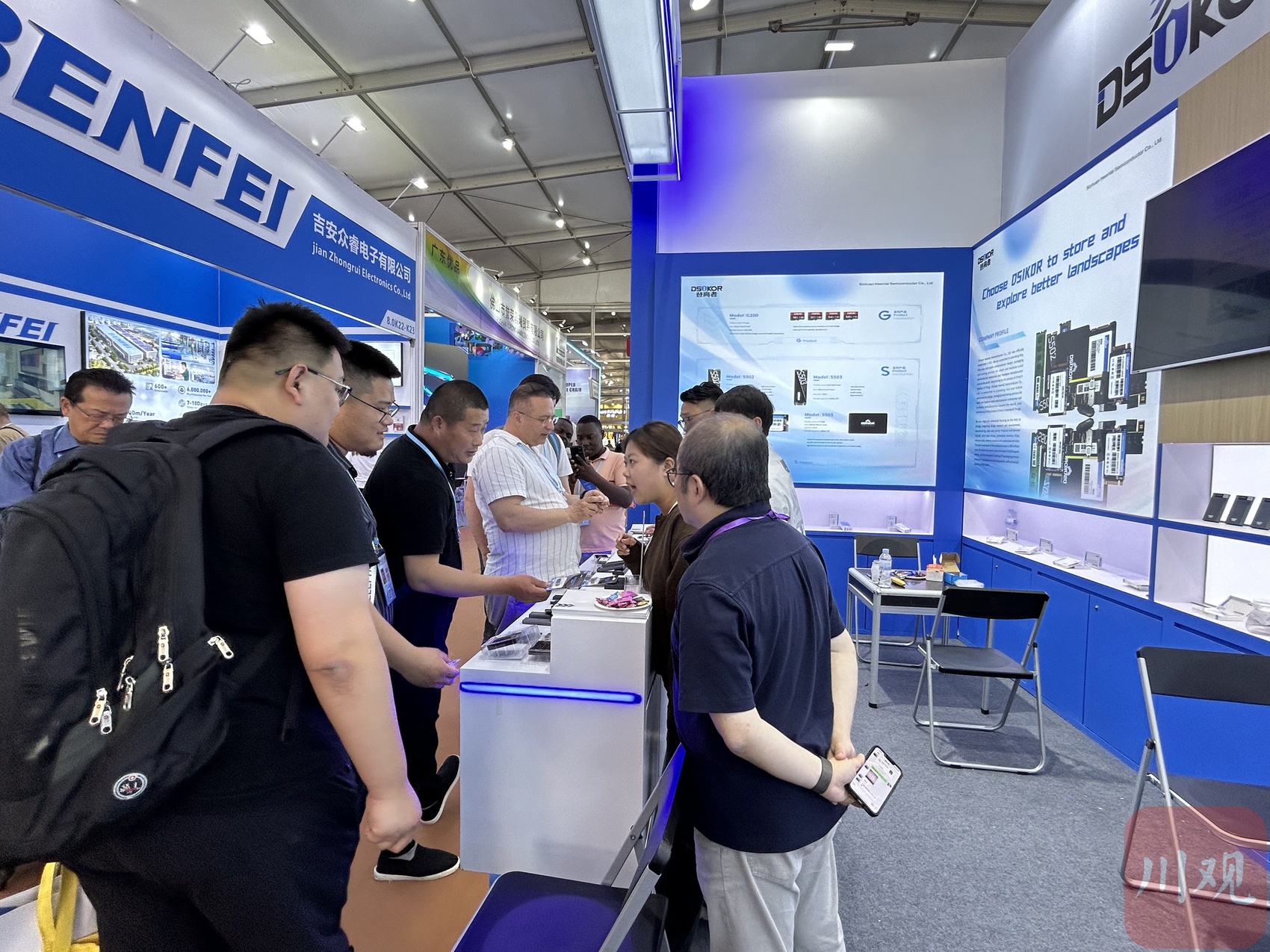 在广交会现场,和恩泰展台将科技元素与生活化场景融合,打造沉浸式体验环境,吸引了来自东南亚、印度、欧洲等多个国家的采购商驻足洽谈。“这些存储产品很有亮点!”一些采购商看着遂宁产固态硬盘产品,忍不住发出赞叹。