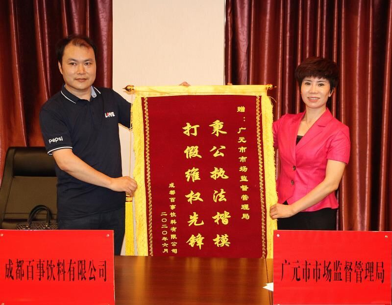 成都百事饮料有限公司给广元市市场监督管理局赠送锦旗
