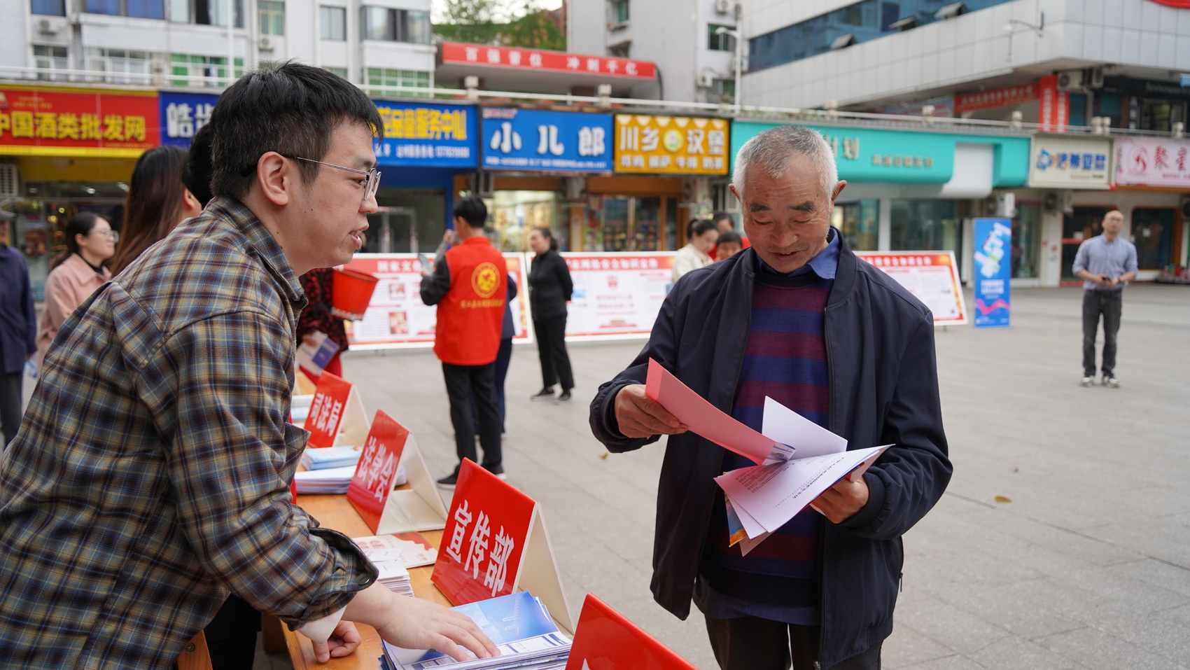 “你好,请问你知道日常生活中如何维护国家安全吗?”4月15日,宣汉县东乡街道东门广场,文明实践员正引导居民在日常生活中维护国家安全。