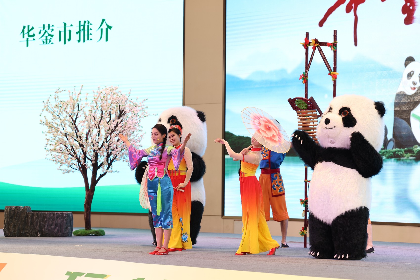 4月17日,华蓥市文旅推介人员正在介绍华蓥市文旅产业发展情况。