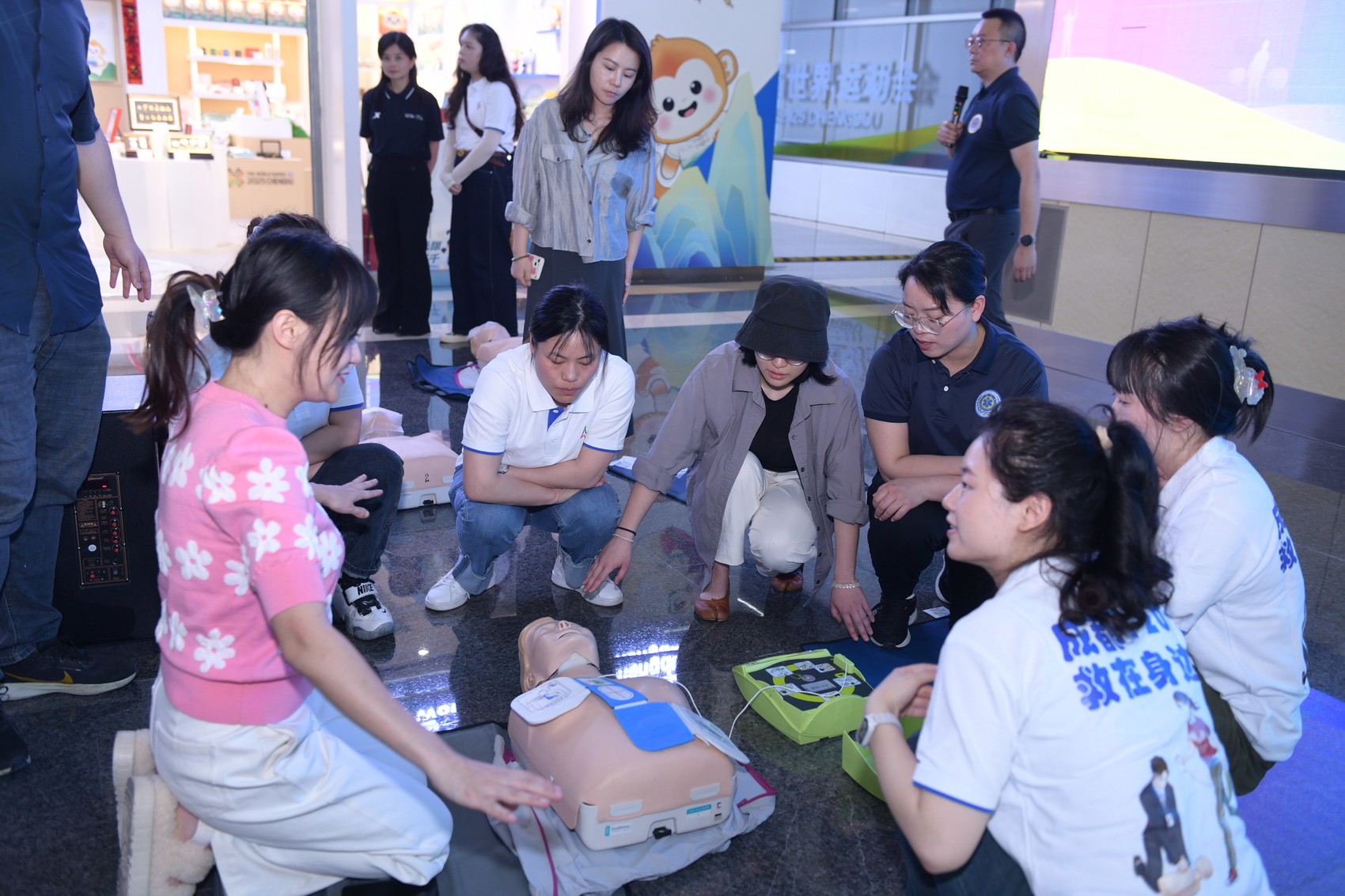 此次培训组建了专业化教学团队,邀请到成都市急救指挥中心6名专业急救人员及15名医务志愿者,同时依托50套高仿真模拟人教具及AED训练设备,营造急救现场真实场景,打造沉浸式培训课堂。