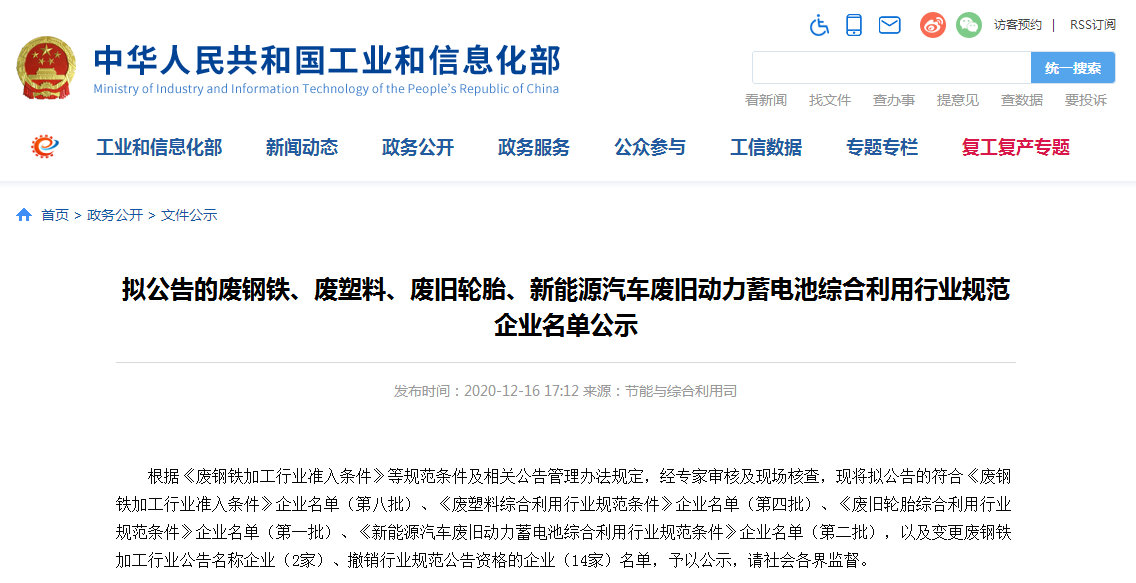 近日,工信部发布《新能源汽车废旧动力蓄电池综合利用行业规范条件》企业名单(第二批),四川长虹润天能源科技有限公司(以下简称“长虹润天”)等22家企业入榜,其中长虹润天成为西部唯一梯次利用白名单企业。