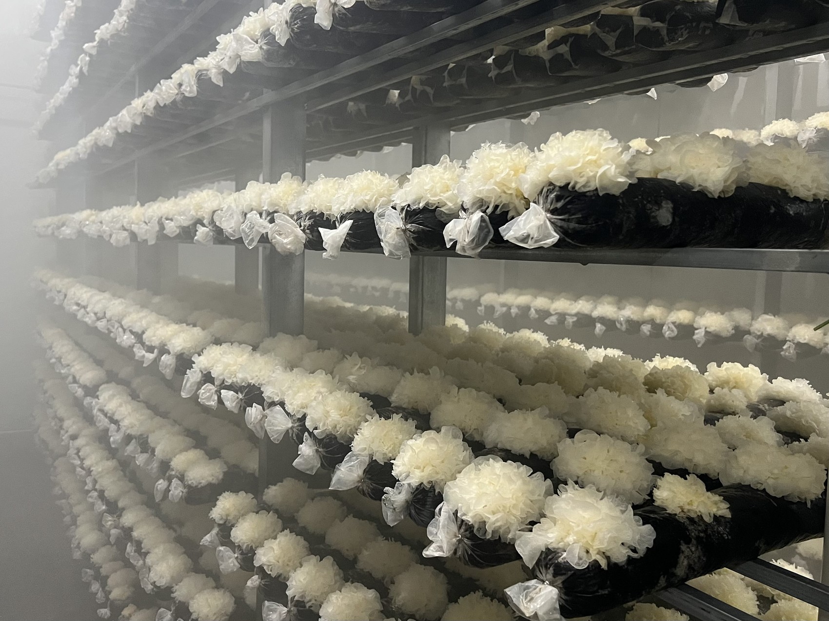 耳房里,通过木屑银耳的种植技术,银耳每45天一个生长周期。 谭小龙 摄