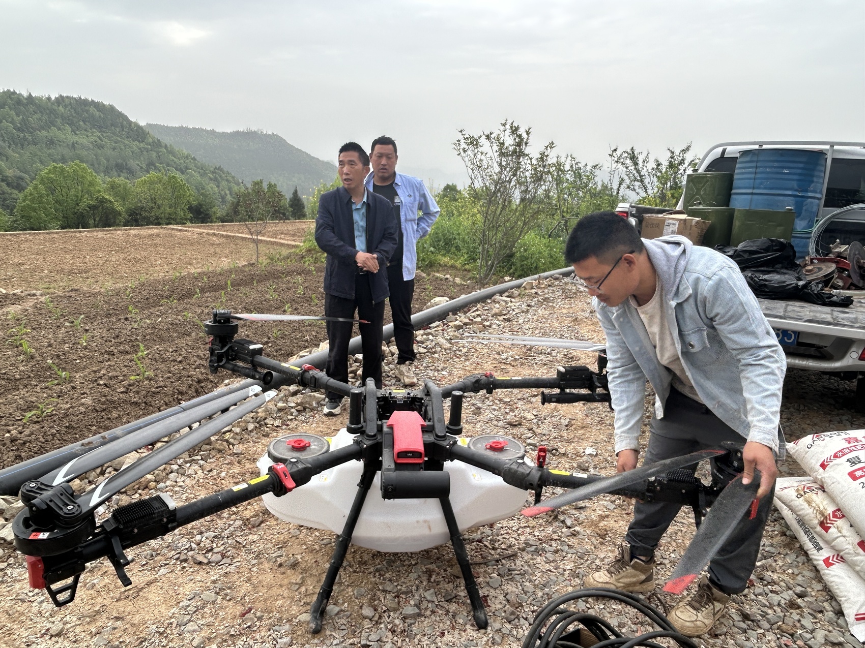 在他身后,3台耕播机正高精度开沟播种,植保无人机同步作业。在这个秦巴山区的传统村落,正通过利用“天上飞+地上跑”的智慧农业,上演春耕的新鲜事。