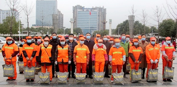 活动现场还开展了“爱心暖心包,关爱环卫工”慰问活动,为200名环卫工人送去了价值4万元爱心温暖包。(利州区总工会供图)
