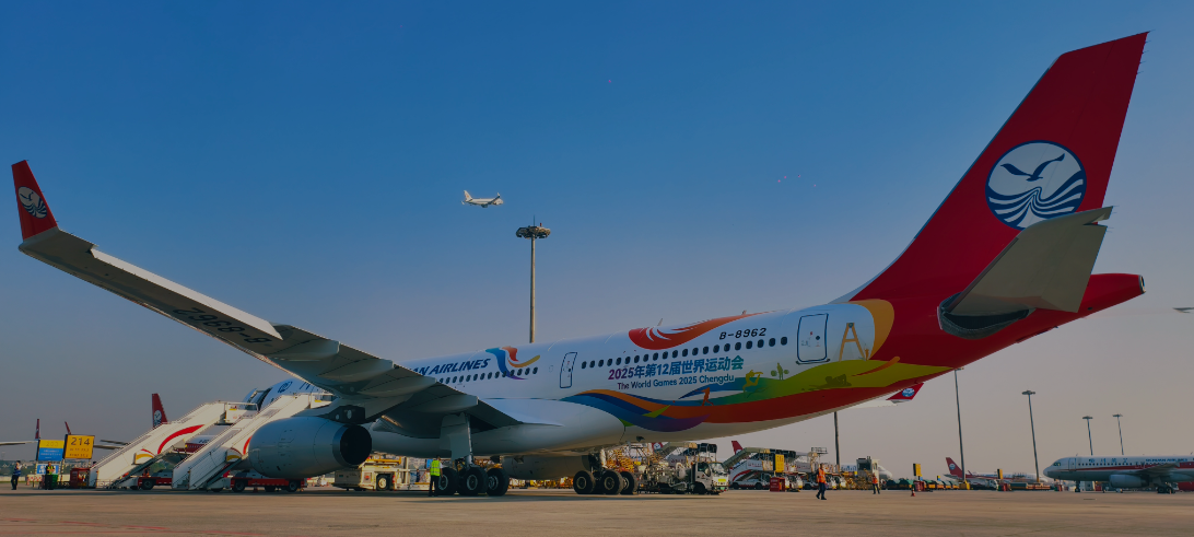喜迎世运会,成都已就位,世运精神邂逅中国美学,精彩的涂装为全球旅客打造具有“中国文化,蜀韵特色”的航空旅程。