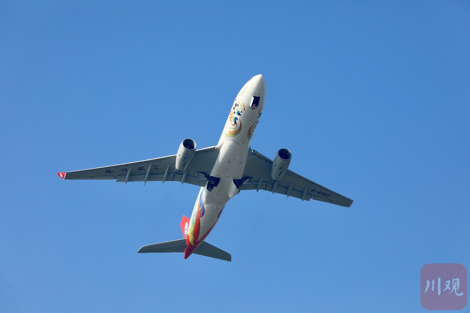 蓝天白云之上,喷涂着“蜀宝”“锦仔”的空客A330宽体客机,在万众瞩目中一飞冲天。4月18日上午8时55分,作为2025年成都世运会“全球合作伙伴”,四川航空量身打造的首架A330“成都世运号”主题涂装飞机(B—8962)从成都双流国际机场成功启航,执行首次运输任务飞往江苏无锡。