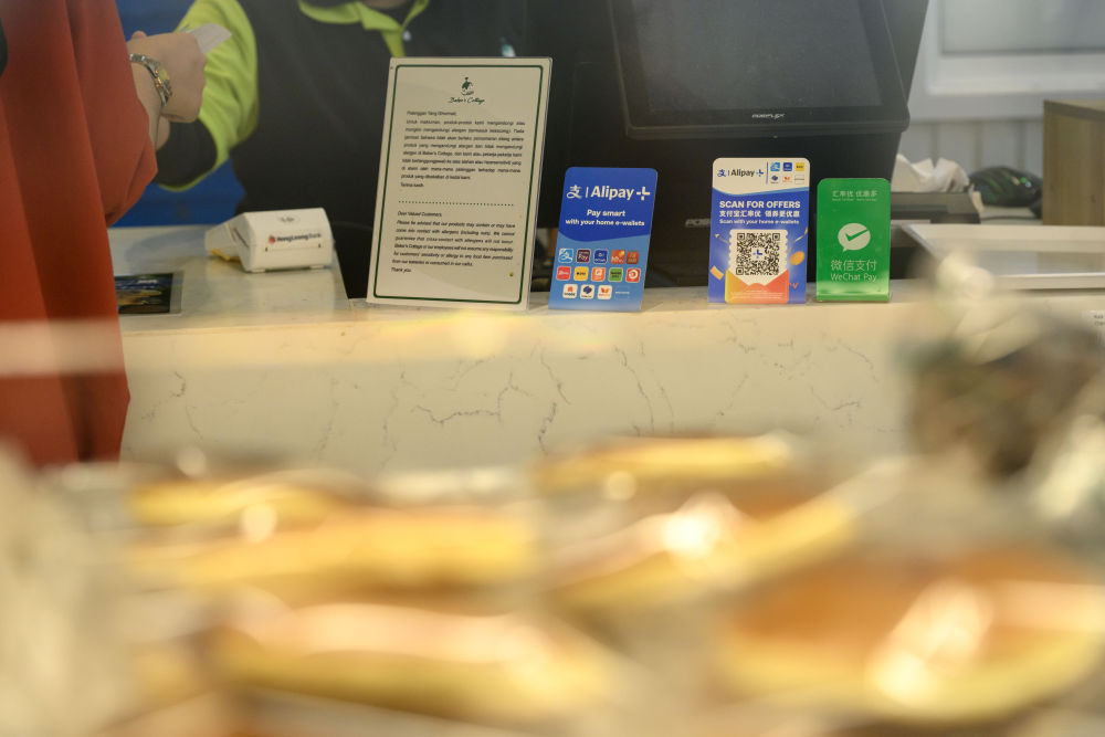 2025年4月10日,在马来西亚吉隆坡,中国游客通过微信支付购买商品。