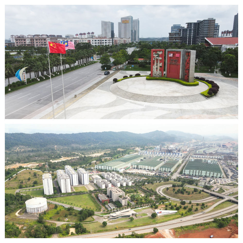 拼版照片:上图为位于广西钦州市的中马钦州产业园,下图为位于马来西亚彭亨州的马中关丹产业园(2024年6月13日摄)。中马钦州产业园和马中关丹产业园于2012年和2013年相继开园,开创了“两国双园”合作新模式。十多年来,“两国双园”合作模式在项目建设、创新合作等方面取得丰硕成果,加快推动中马产业合作走向纵深。
