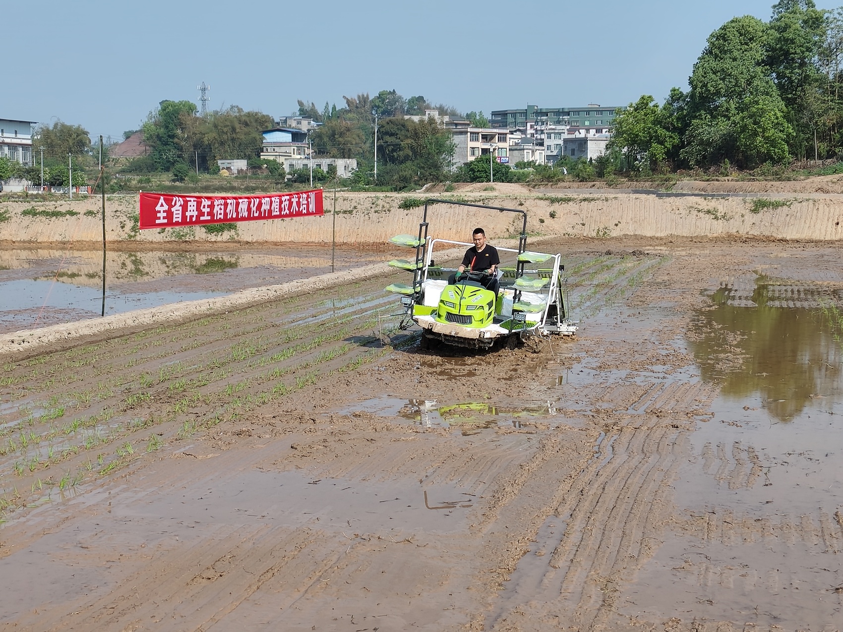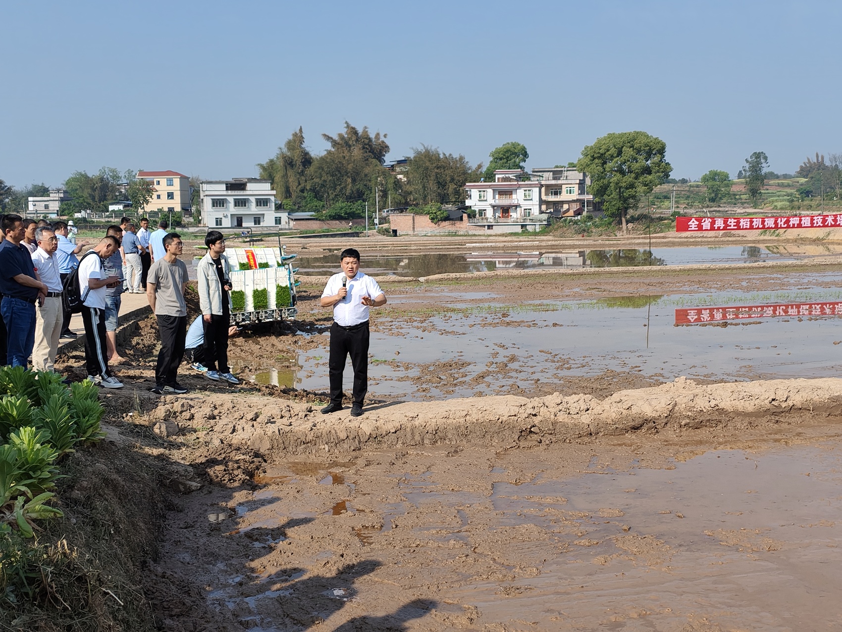4月18日,全省再生稻机械化种植技术培训在合江县白沙镇灵丹村举行。一种适宜于川南再生稻产区的高产再生稻宽窄行技术得到了进一步的集成推广。