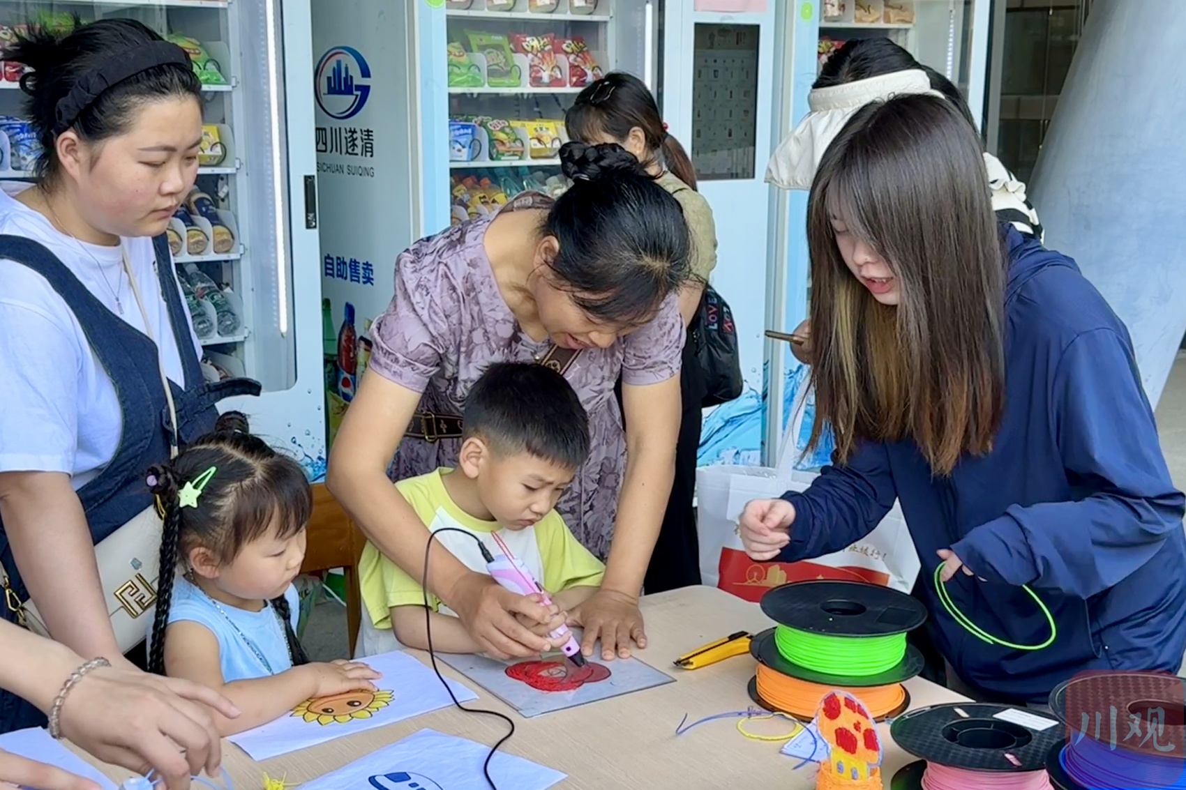 “虽然电子设备很发达,但还是只有纸质书本能让孩子静下心来,养成阅读的好习惯。”遂宁市民廖菊芬说。活动现场,3D绘画体验、图书交换、与“遂小图”人偶互动合影吸引学生们热情参与,学生家长相互讨论分享着阅读带来的心得与启发。本次活动吸引广安、资阳、内江、自贡以及重庆潼南区等川渝多地群众参与,活动覆盖群众5000余人次,完成图书交换2000余册次。