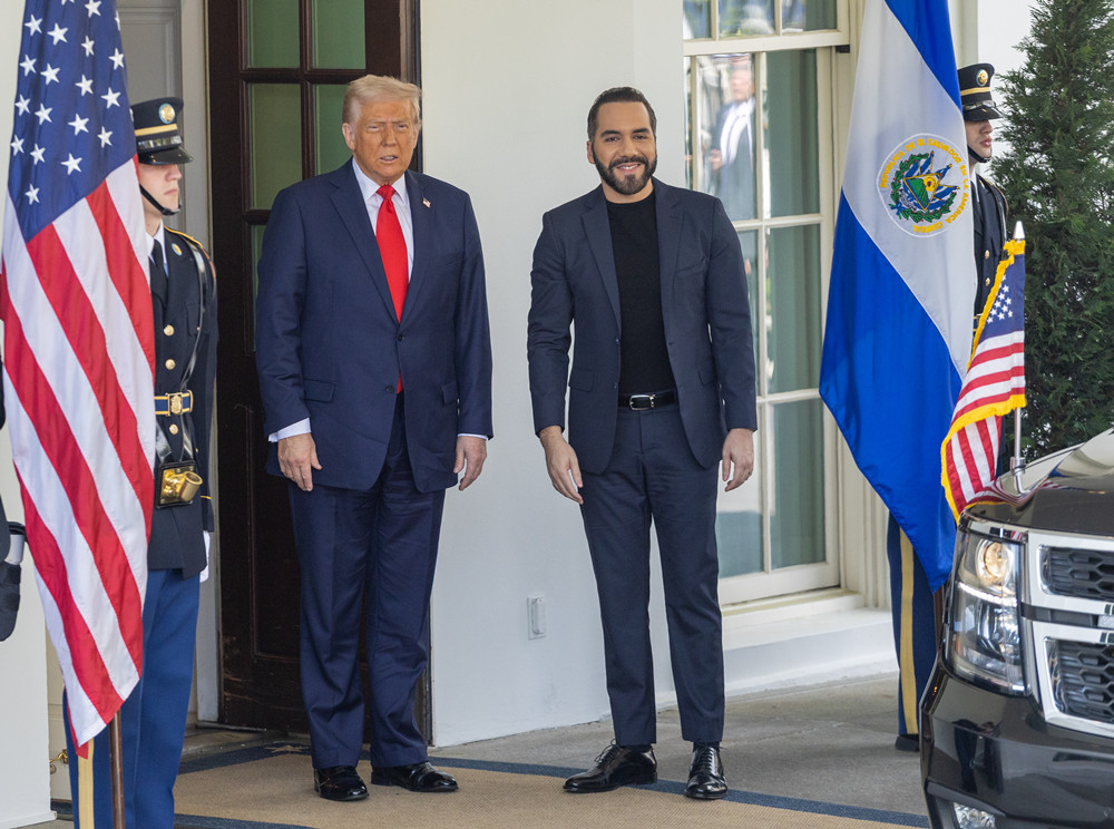 4月14日,美国总统特朗普在华盛顿白宫迎接到访的萨尔瓦多总统布克尔。特朗普当天在白宫会见布克尔时对记者说,伊朗正在拖延与美国的伊核问题谈判进程,可能面临美国的“严厉回应”。图据新华社