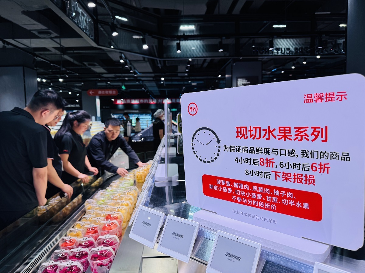 “涪城万达店以数字化温控系统实时监控冷链温度,让生鲜商品从产地到货架始终处于最佳保鲜状态。”在现切水果专区,该区负责人介绍,果切超4小时八折、6小时六折、8小时下架,真正实现了“新鲜不过夜”。